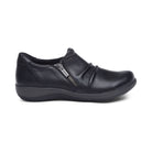 Let your feet indulge in style and support with the Katie. This casual style is designed with ruching down the vamp and features arch support, pressure relief technology, and a side zipper for easy on and off. Crafted with luxurious genuine leather and a dual-density outsole, the Katie will provide long-lasting comfort and durability.