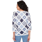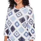 Intricate diamond crochet gives this sweater a hand-touched, artisanal feel. The lined openwork pattern is framed with scalloped edges at the jewel neckline, sleeves, and hem, adding delicate charm to every detail. Finished with three quarter sleeves, it's a beautifully textured layer that feels both timeless and unique.