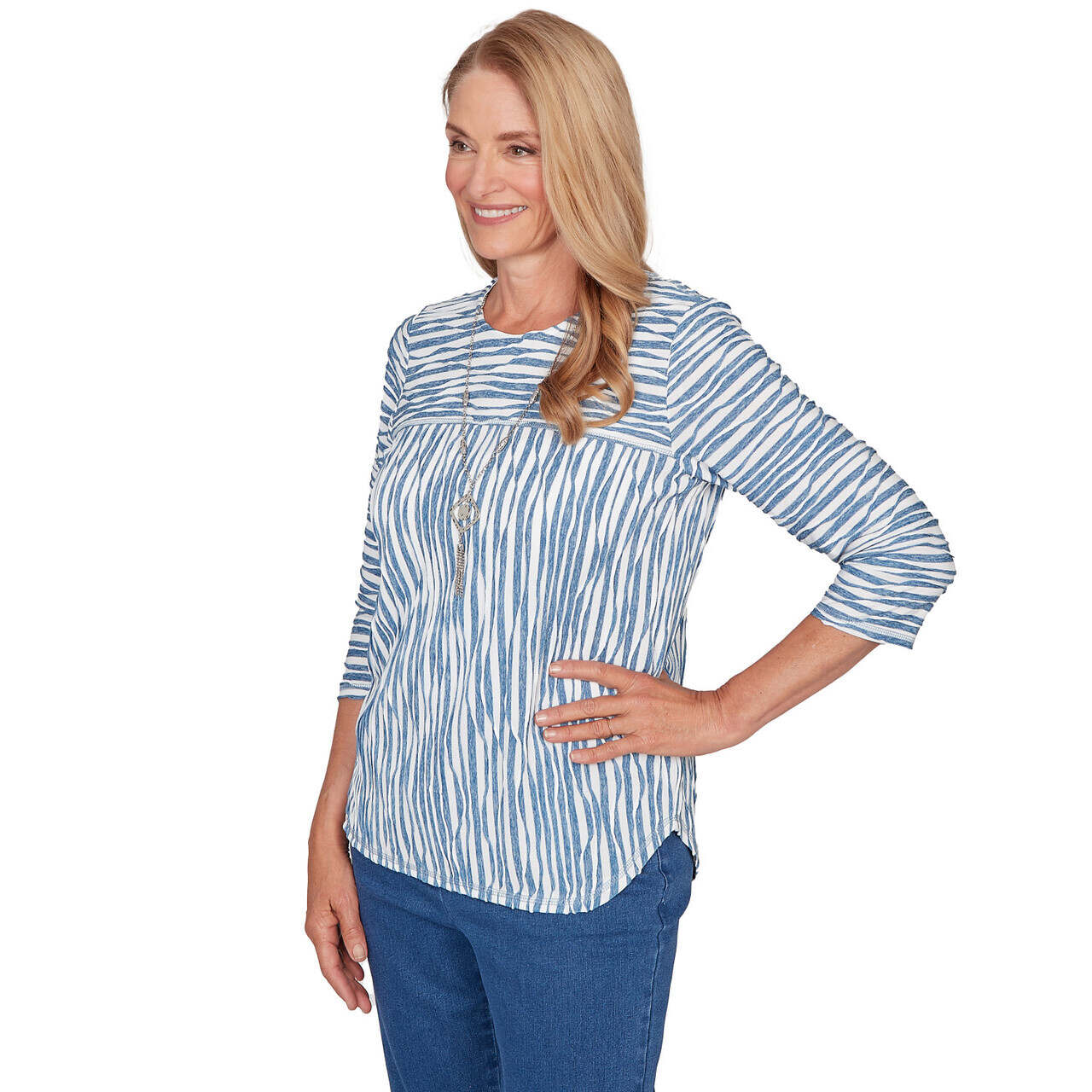 Women's Novelty Spliced Textured Top With Necklace - 29157