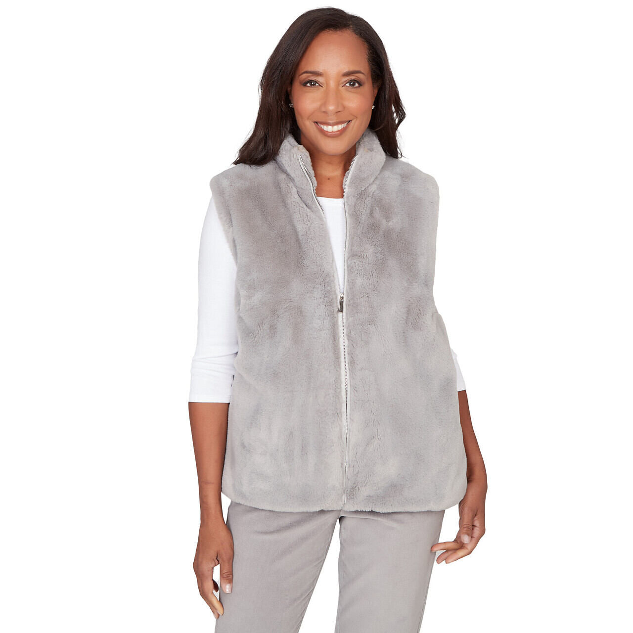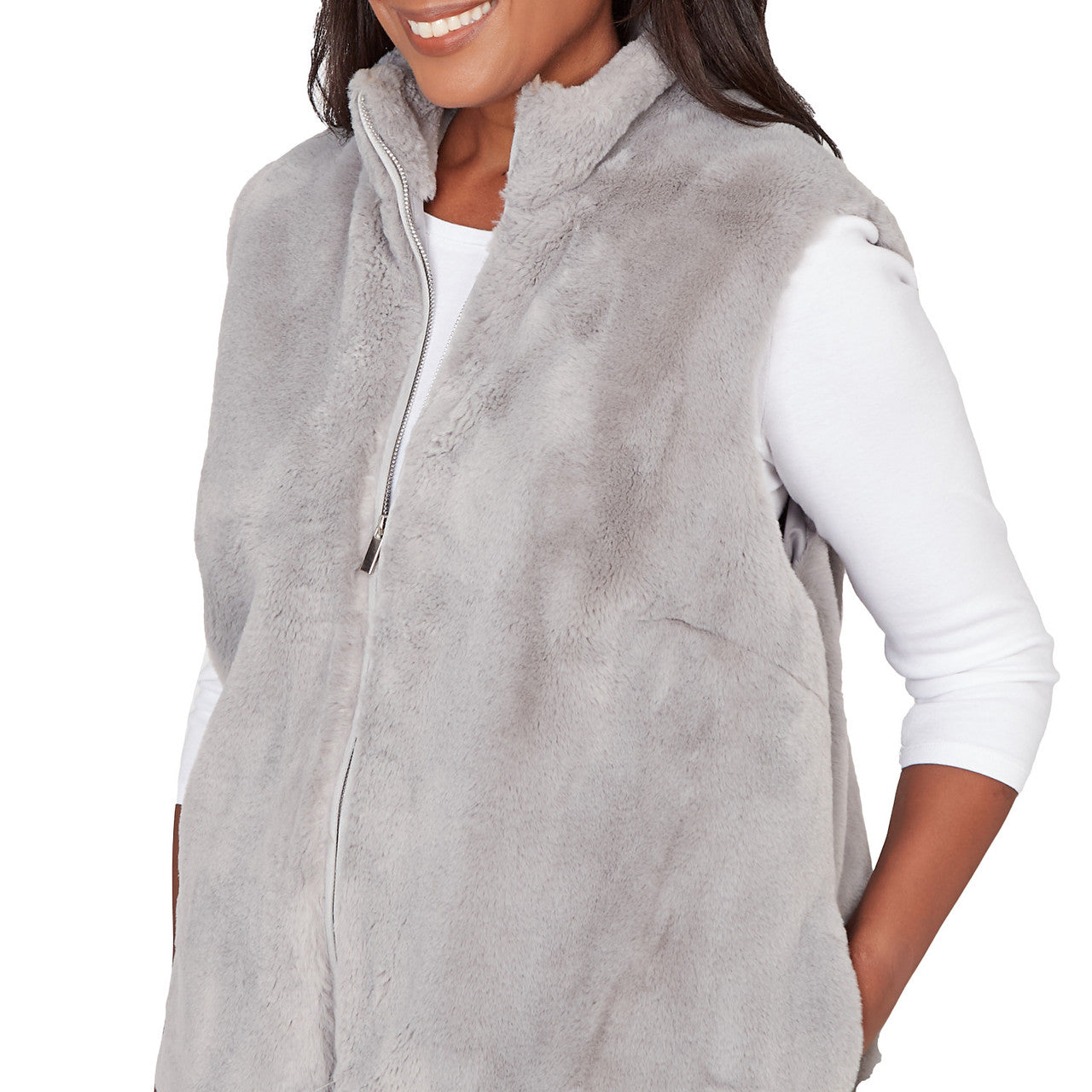 Women's Plush Faux Fur Zip Front Vest - 21131