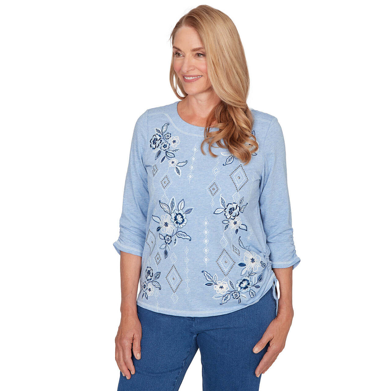 Women's Classic Fit Soft Embroidered Pattern Top - 21155