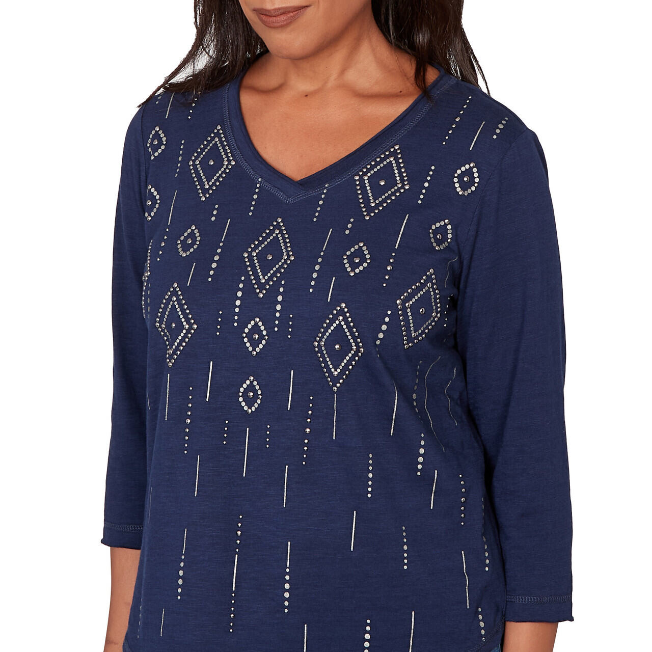 Women's Floral Diamond Embroidered Knit Top - 29153