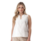 Festival vibes, all season long. The Festival Embroidered Split Neck Tank brings that carefree, sun-soaked feeling into your everyday lineup. Whether you're dancing at your favorite summer concert or just grabbing peaches at the farmer's market, this tank is ready for whatever the day brings.