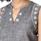 Crafted from breathable 100% organic cotton, it's light and breezy in all the right ways. The split neckline keeps things relaxed, while the floral-inspired embroidery adds just the right touch of boho charm (without going over the top). And here's the best part: it's made in a Fair Trade Certified™ factory-so it does good while looking good, just how we like it.