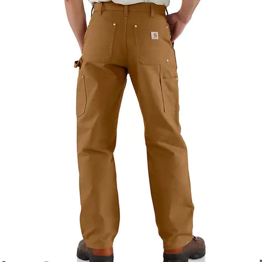 Hard work in, hard work out. Behind every pair of these pants are 61 pairs of hands that cut, sew, hem, and triple-stitch the 28 pieces that form the classic B01. So before they even show up on the jobsite, they've already lived through several shifts of hard work. These men's dungarees have changed very little since they were introduced in 1939. Rugged design featuring heavy-hauling back pockets and a double layer at the knees. Our heavyweight firm-hand duck is the most durable canvas out there. Like any classic, it only gets better with time.