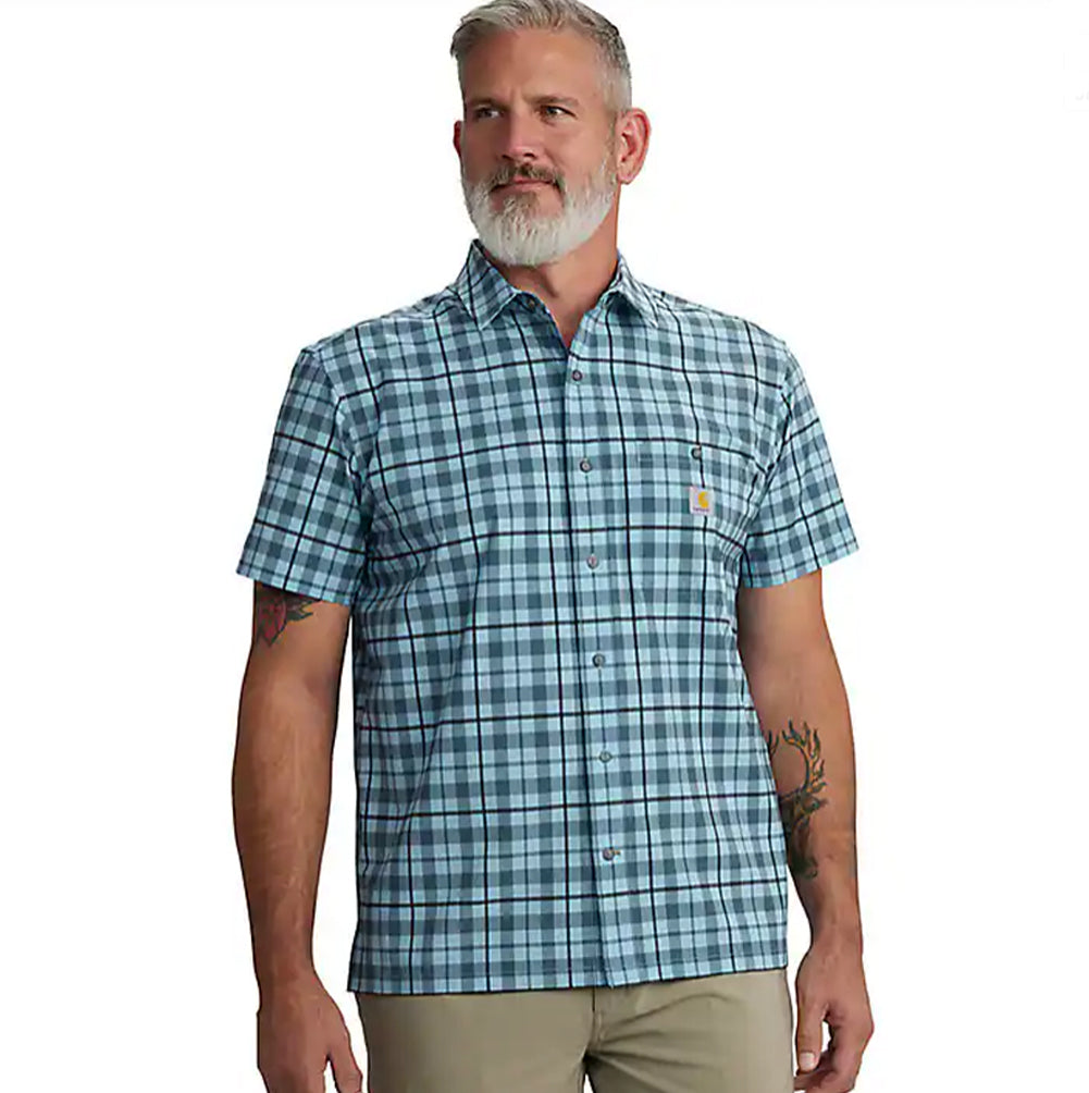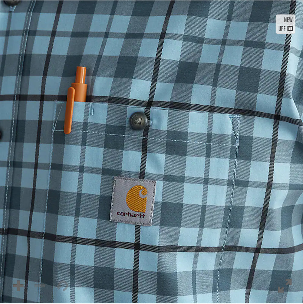Taking measurements, finishing paperwork, or relaxing after a long day, this men's short-sleeve plaid shirt is perfect for a hot summer's day. It's made with an ultra lightweight, UPF-50 rated jersey that blocks sun, fights sweat, and dries quickly to keep you cool and focused.