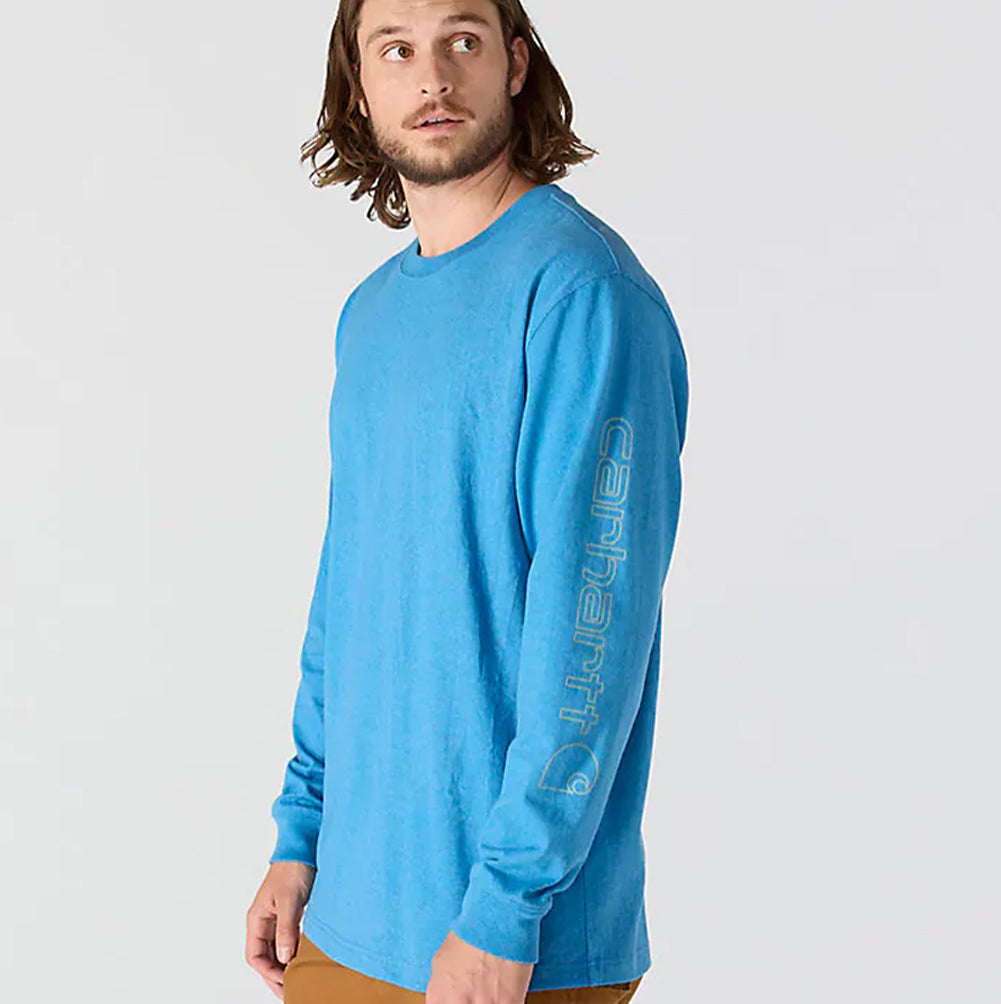 Since 1889, Carhartt has made durable workwear you can count on as you tackle the toughest jobs. This men's long-sleeve t-shirt bears the name proudly on the sleeve. It's made of heavyweight cotton jersey and cut generously for a roomy fit.