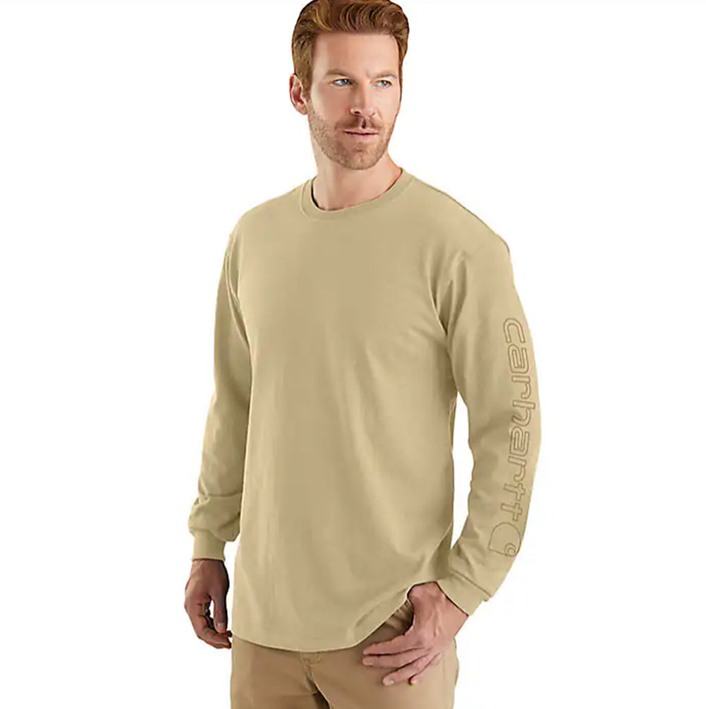 Since 1889, Carhartt has made durable workwear you can count on as you tackle the toughest jobs. This men's long-sleeve t-shirt bears the name proudly on the sleeve. It's made of heavyweight cotton jersey and cut generously for a roomy fit.