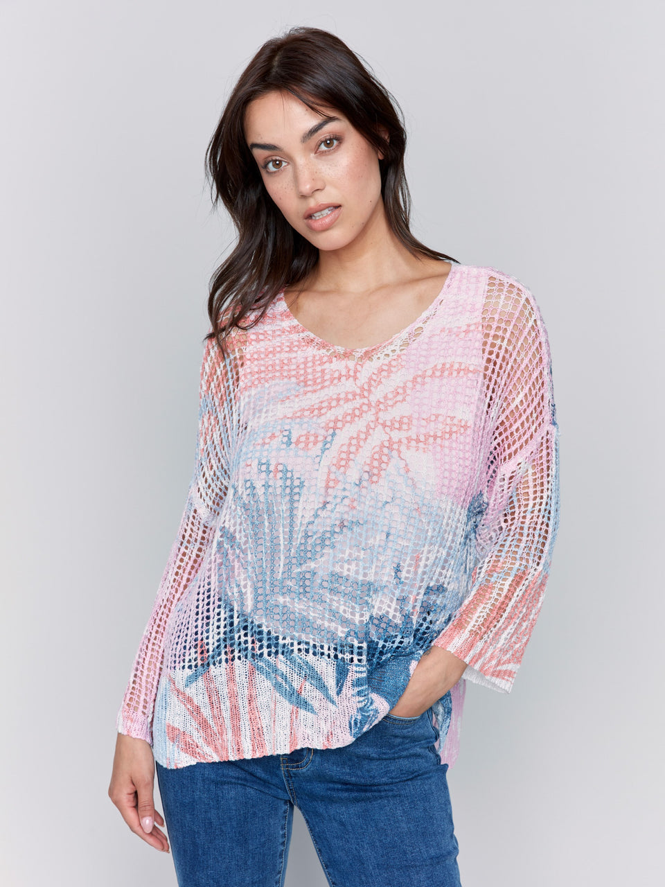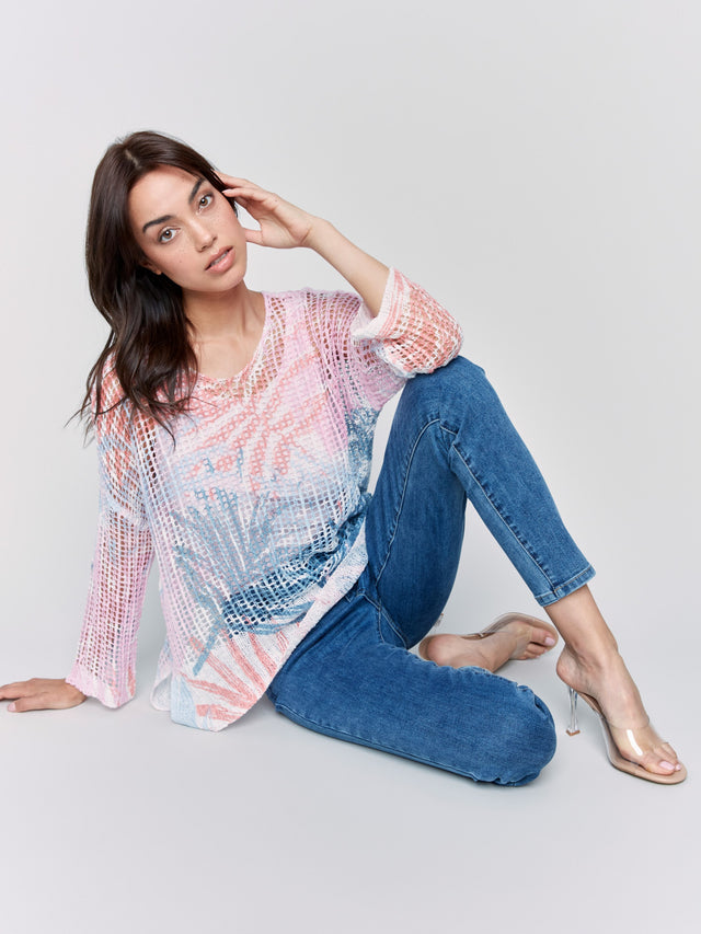 Printed Fishnet Crochet Sweater - Tropical