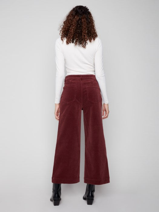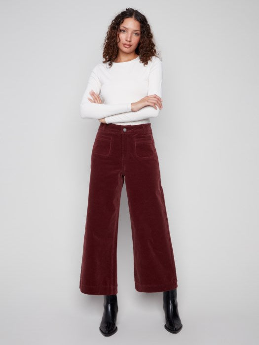 Cropped Patch Pocket Flare Corduroy Pants - Cabernet - C5538RR-660B