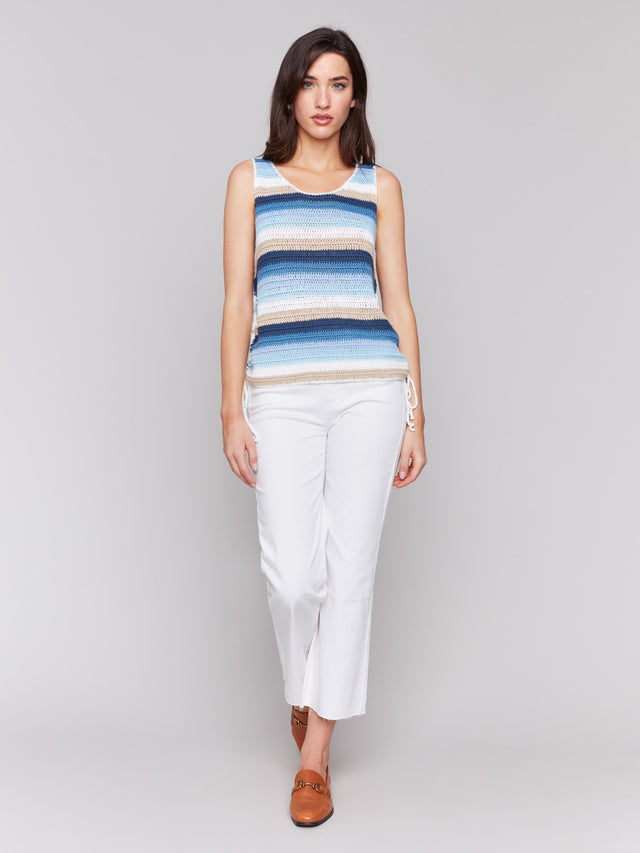 Sleeveless Striped Crochet Top with Side Ties - Blue - C2810-267C