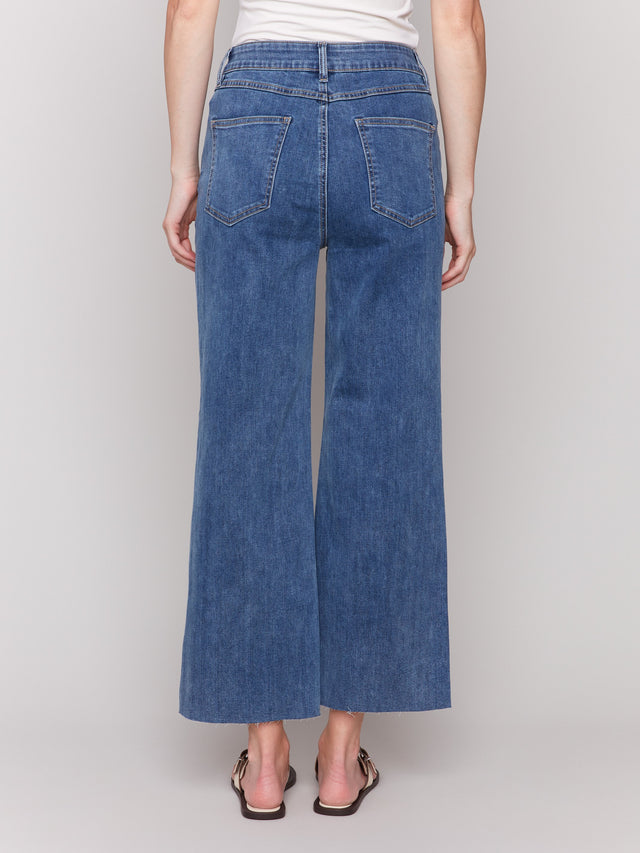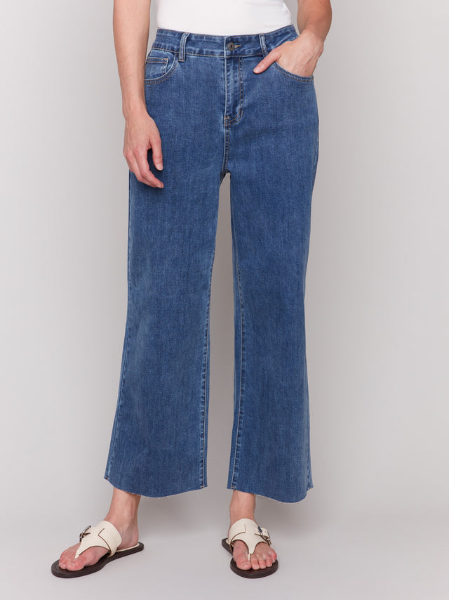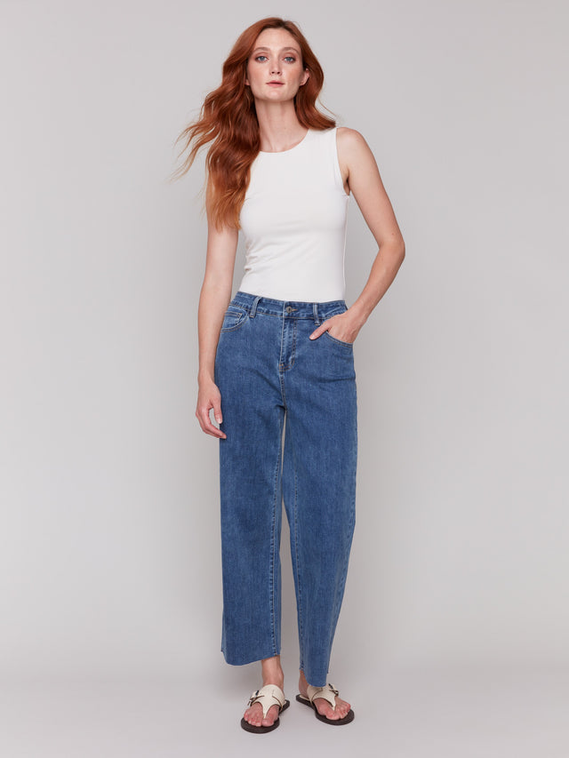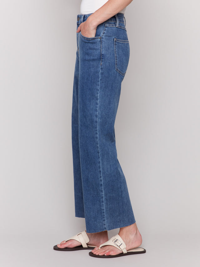 Wide Leg Jeans With Raw Edge - Medium Blue - C5497R-431A