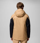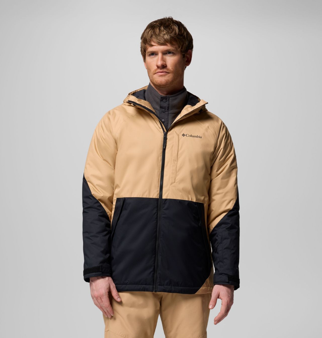- Drawcord-adjustable, helmet-compatible hood seals out the elements
