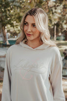 Ready for something a little different? Our new crossover hoodie in cappuccino comes with a crossover neckline sweatshirt and side pockets. Not your standard sweatshirt! Full front screenprint design.