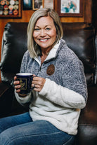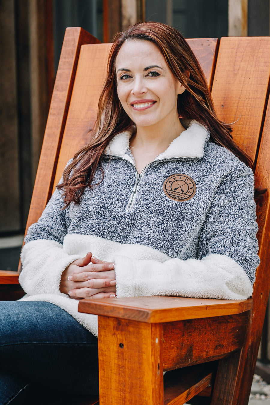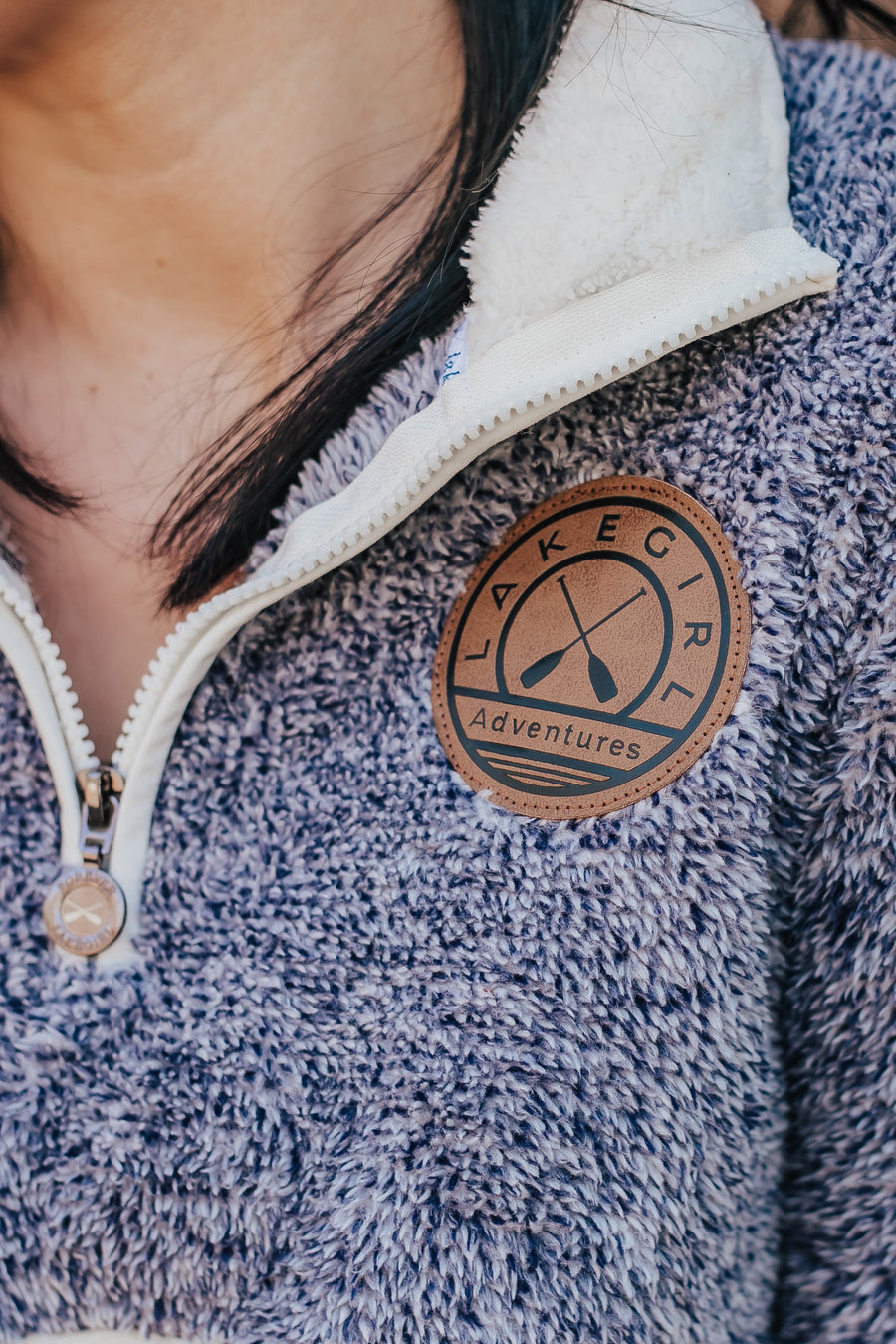 This navy and ivory sherpa will warm you right up on those cold winter days. Features a brown Lakegirl patch and high pile sherpa.