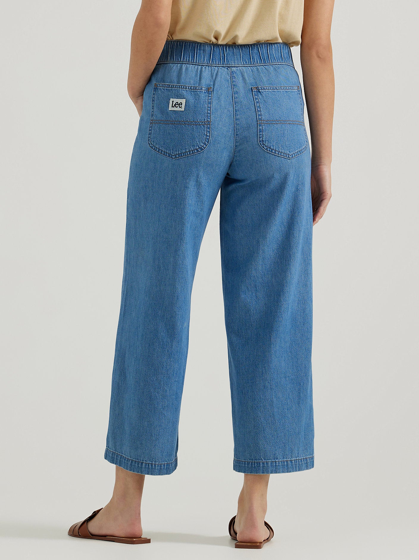 When we say Ultra Lux, we mean it. The Lee® Women's Ultra Lux Comfort Wide Leg Utility Crop melds our stretchy elastic waistband with your favorite cut-off capri. Designed with plenty of pocket space, a high-rise waist, and a wide leg, these cropped jeans prioritize utility without ever losing sight of style.