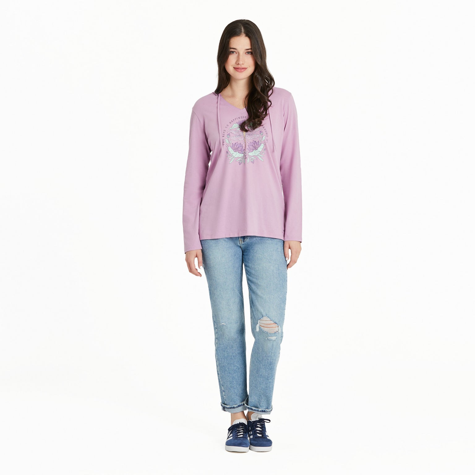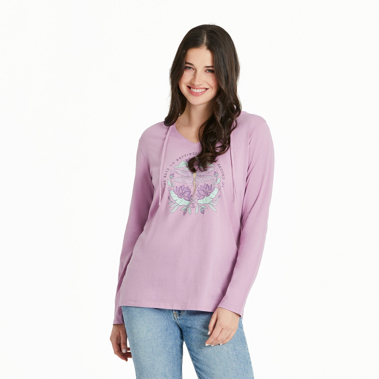 Keys to Happiness Dragonfly L/S Crusher-LITE Hooded Tee - Violet Purple - 139688