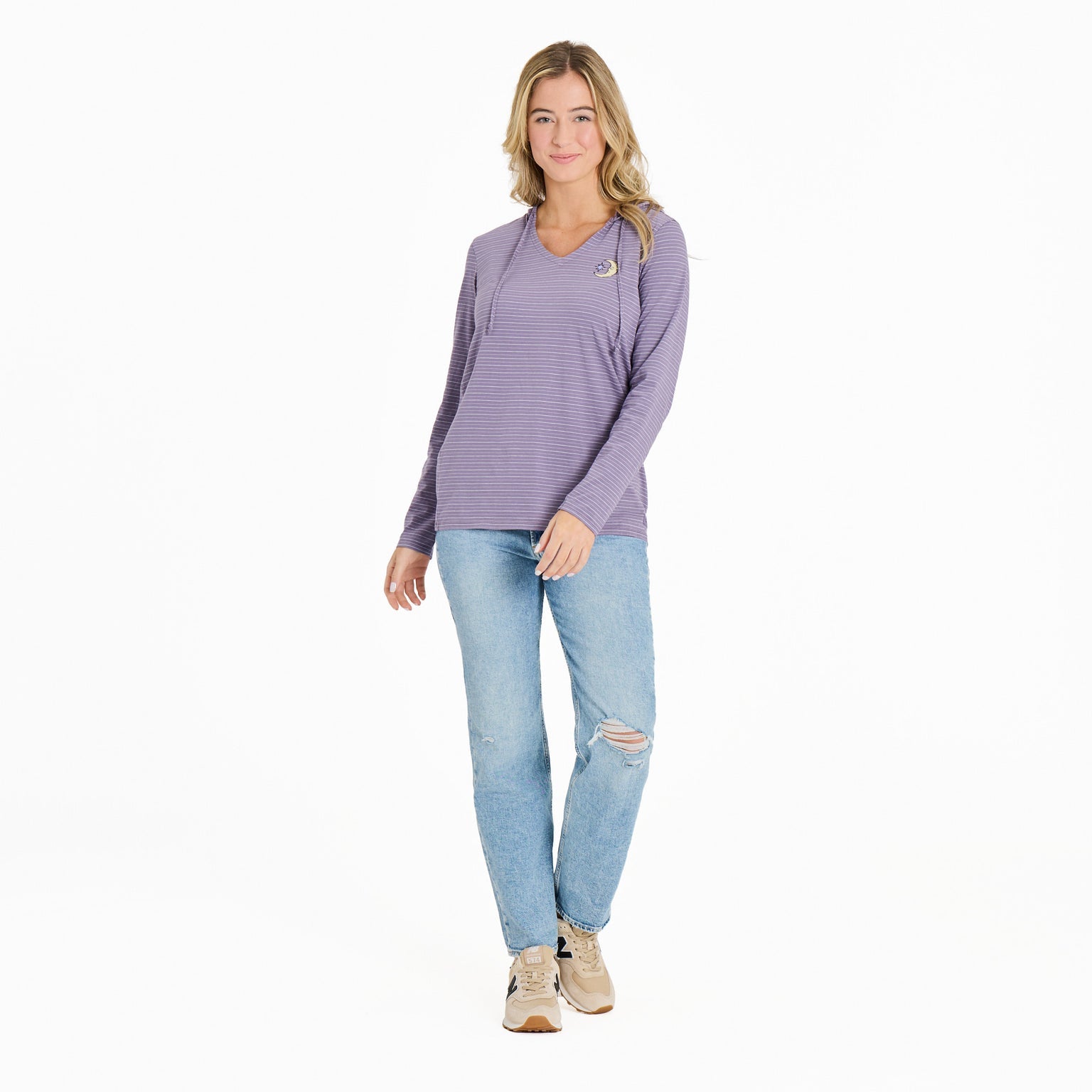 Women's Moon & Star L/S Striped Crusher-LITE Hooded Tee - Dusk Purple - 139702