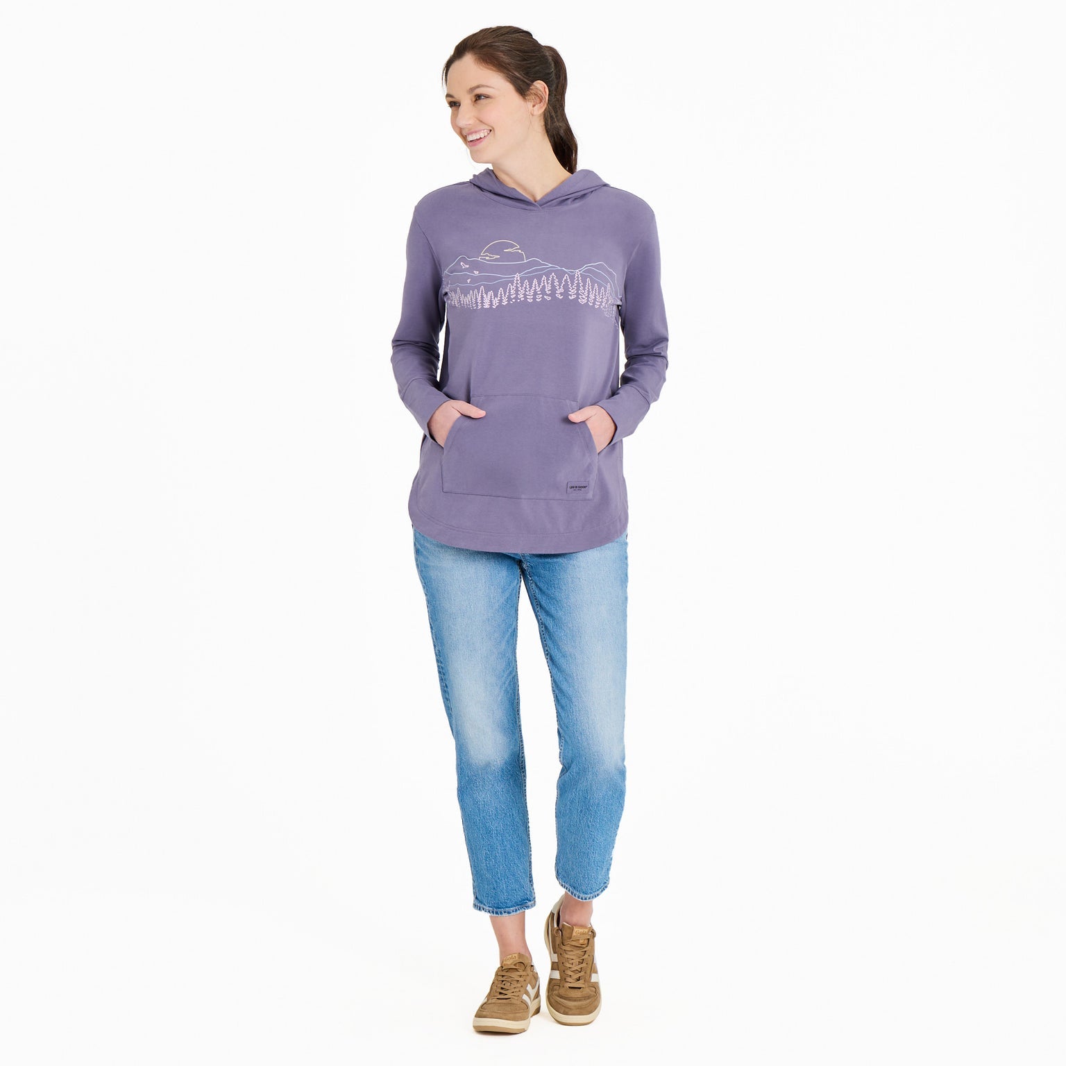 Women's Mountain Tree Landscape Crusher-FLEX Hoodie Tunic - Dusk Purple - 139808