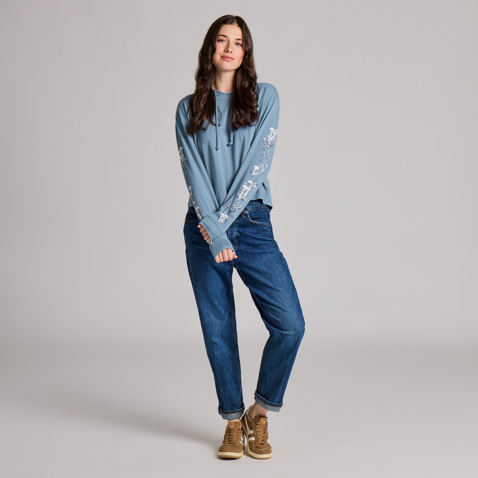Women's Mushroom Garden Crusher Boxy Hoodie - Slate Blue - 153771