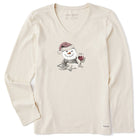 Women's Snowman w Red Wine Long Sleeve Crusher Vee - Putty White - 139608