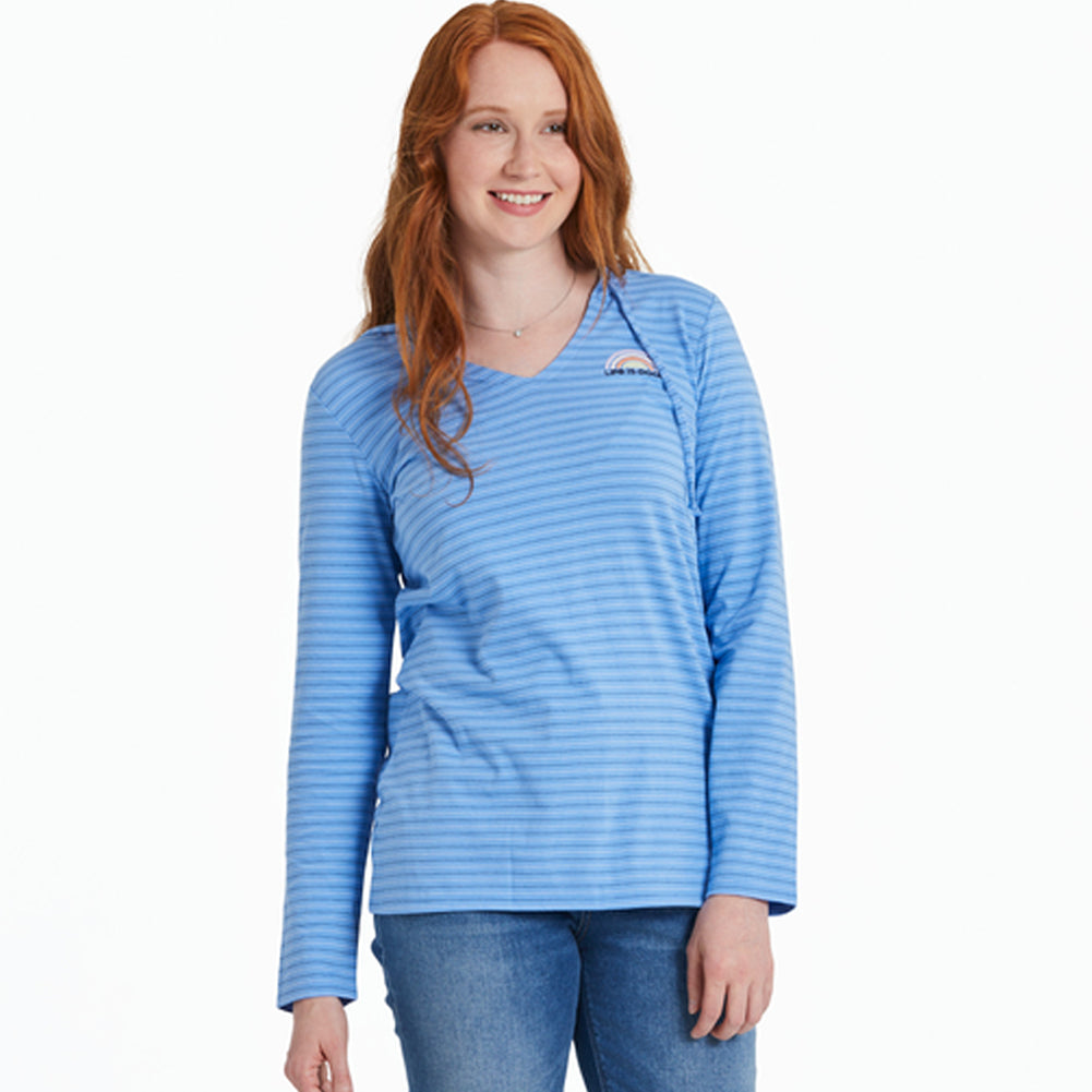 Women's Sun Rainbow L/S Striped Crusher-LITE Hooded Tee - 129310