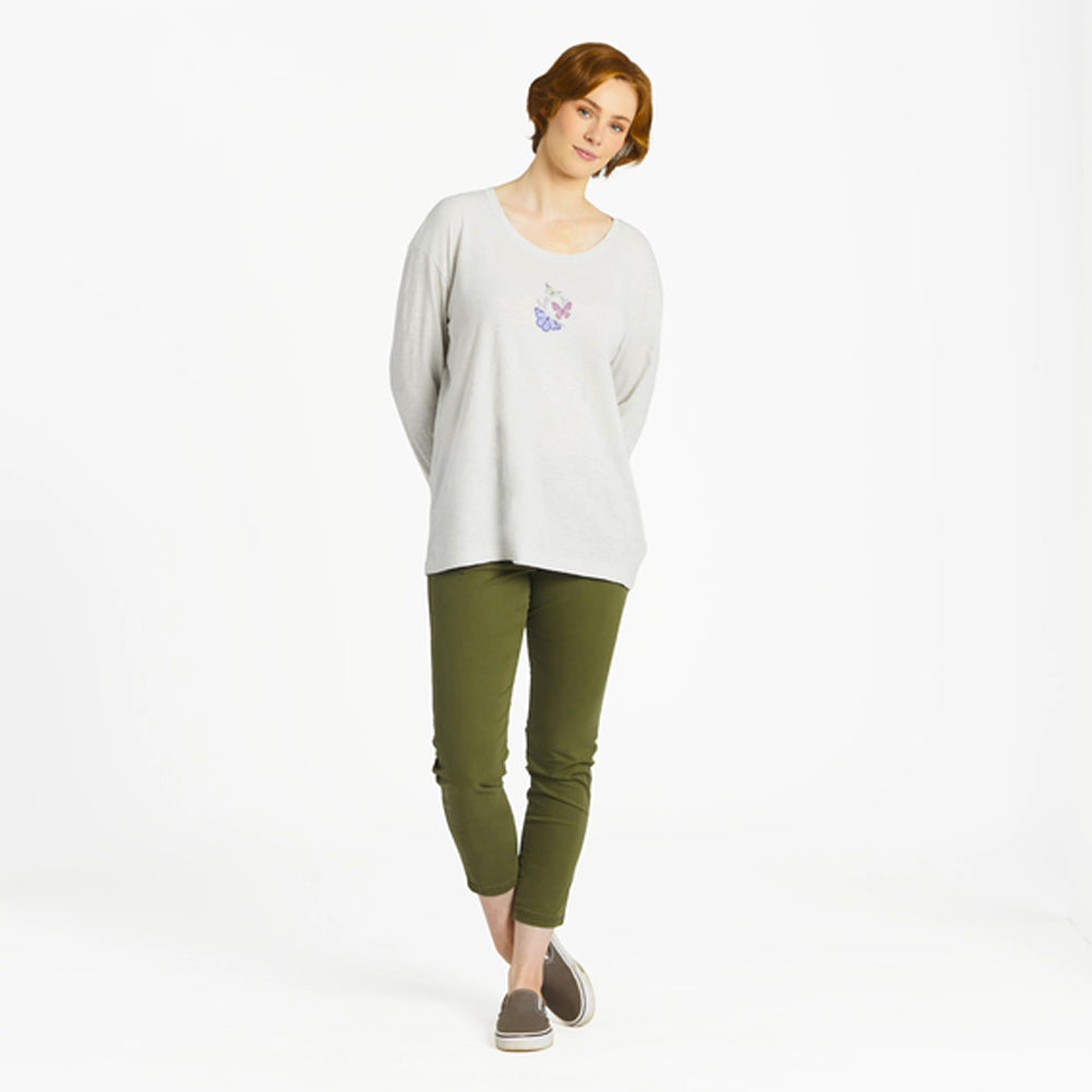 Women's Wildflower and Butterflies Long Sleeve Slub Tee - 115206