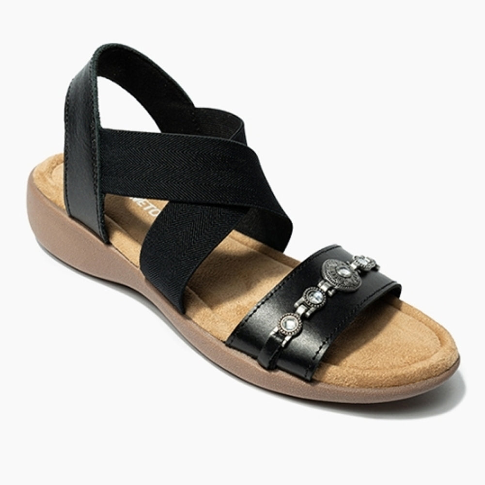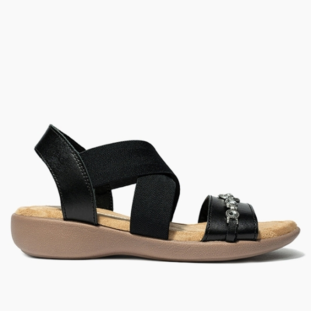 Get ready to love your new go-to sandals! Step into a blend of comfort and style with these multi-strap sandals with a touch of glam. The elastic straps move with you for a flexible, secure fit, while the soft memory foam footbed keeps your feet cushioned all day long.