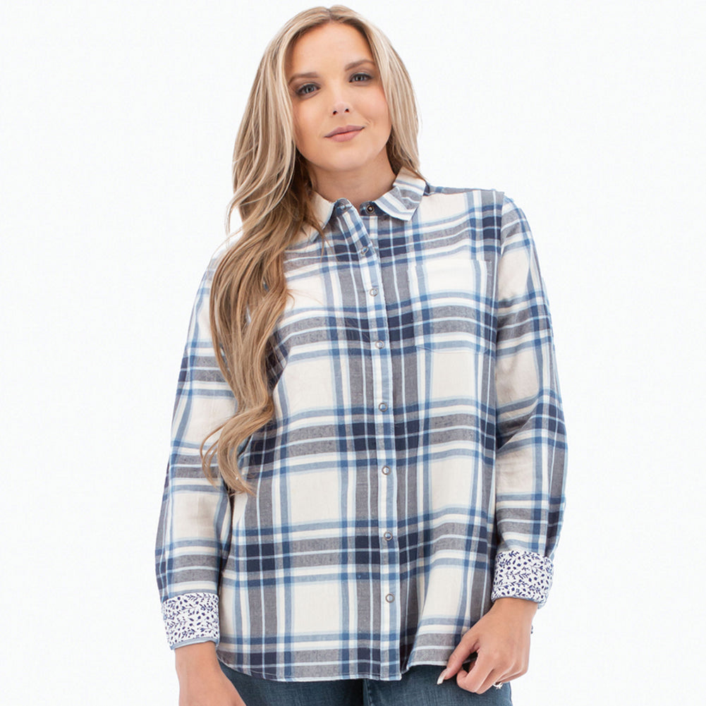 The Aveline Shirt is a classic flannel made for the modern woman. It's all about the details with this one, like the fact Old Ranch Brands utilized 100% natural cotton to make the cozy brushed flannel fabric. Or how the trim at the underside of the cuff, placket, and collar pops with a miniature floral print. We also love the fit of this top: relaxed and comfortable. Traditional finishes are noted throughout, such as the full snap front and the single chest pocket. From work to life, the Aveline Shirt is sure to fit right in.