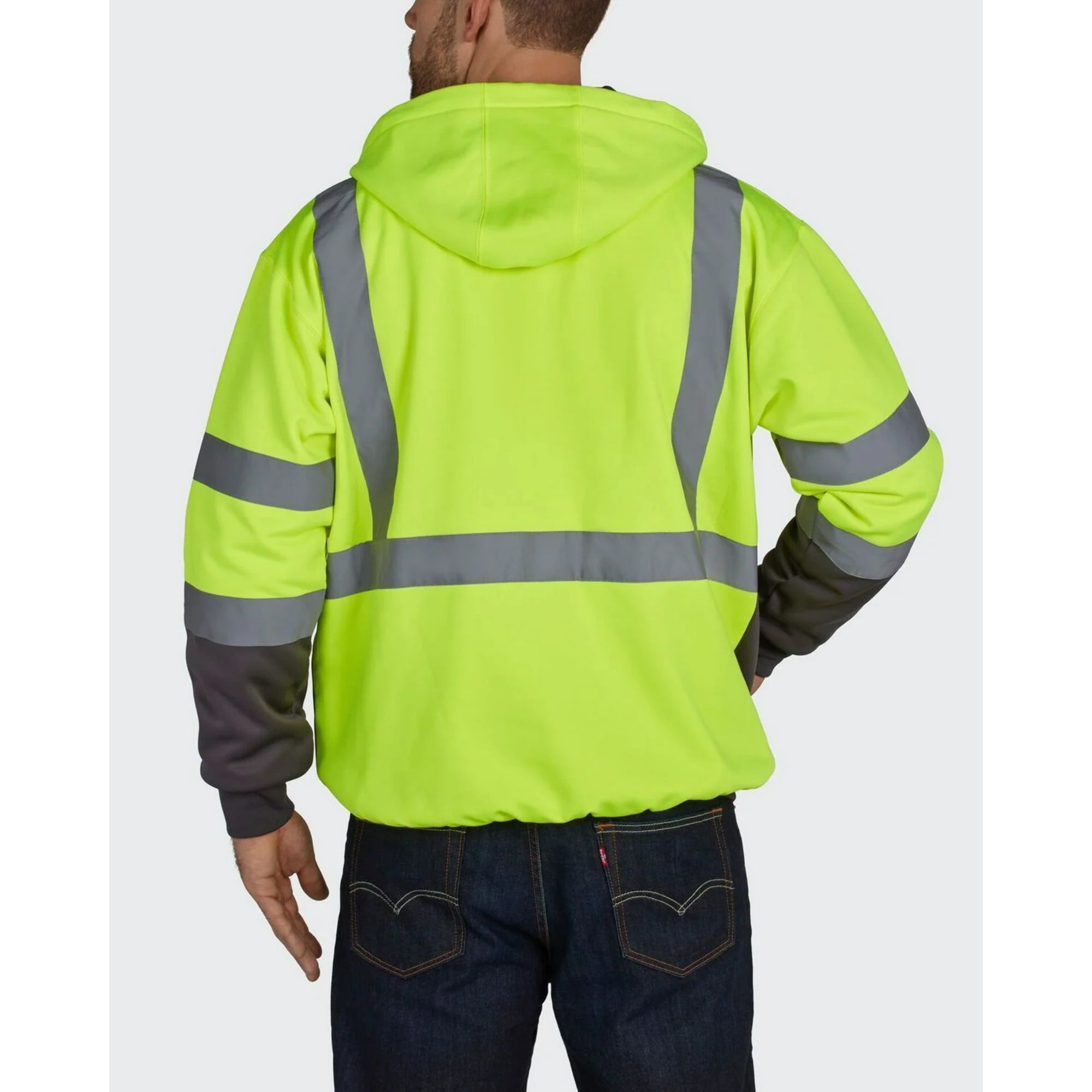 The Ultimate Reflective High-Viz Hoodie: high-visibility workwear hoodie designed to get you noticed on the job site, hunting, or on your motorcycle. Reflective taping combined with the neon lime color provide the ultimate in safety wear.