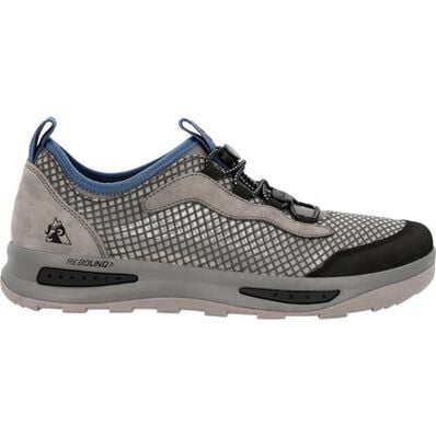 For days around the water, the Rocky NOWAKE is packed with features to keep you out doing what you love for longer. From kayaking to paddleboarding to fishing and boating this fully drainable shoe has you covered in and out of the water. Built with a recycled fishing net upper and a perforated drainable footbed, water is able to flow through freely without pooling, allowing for quicker dry times. Added grip in wet conditions comes from its non-marking, slip resisting outsole with drainable rebound EVA midsole which pushes water out with every step. Features like the integrated neoprene sock construction and locking bungee cord laces with toggle closure add all day comfort and secure support.