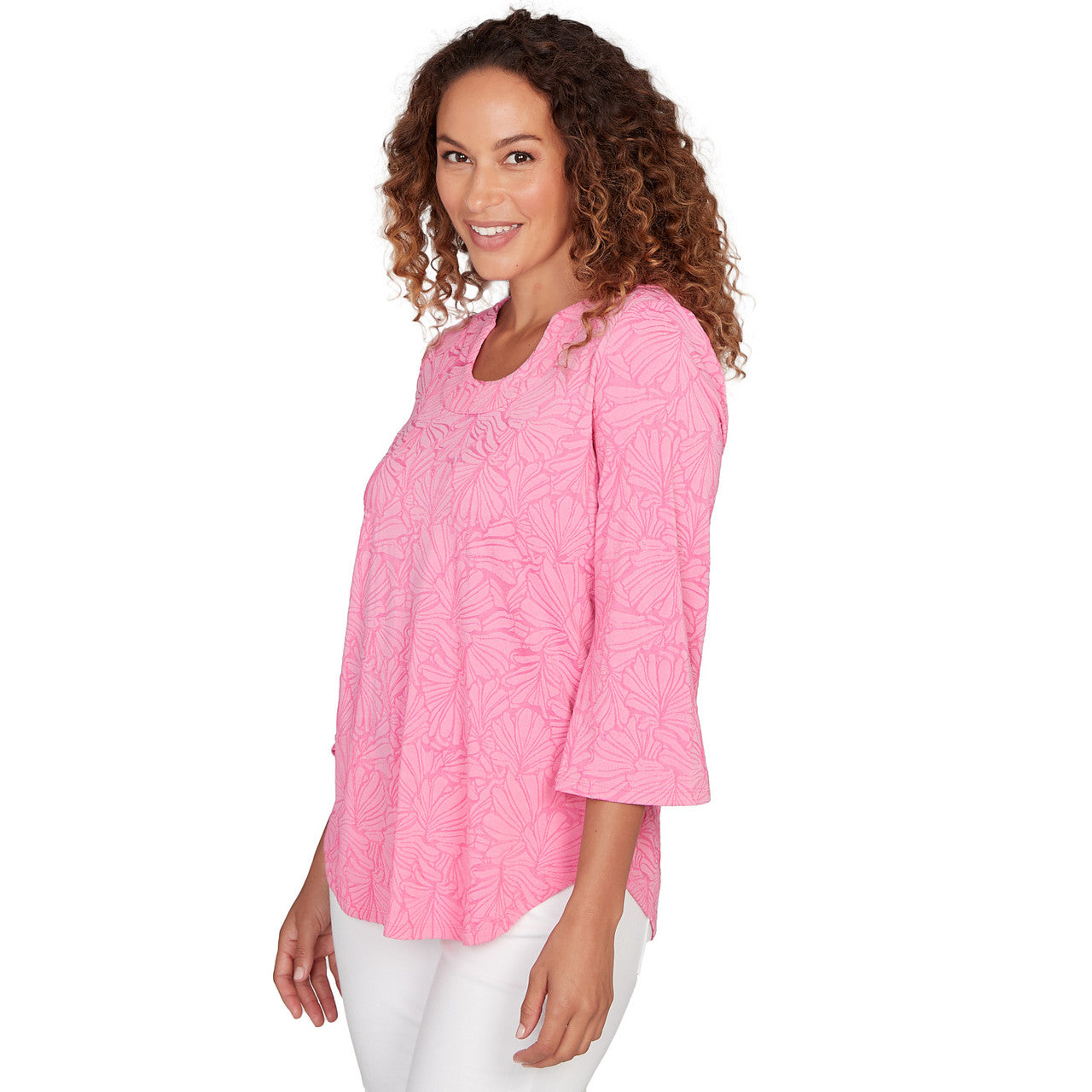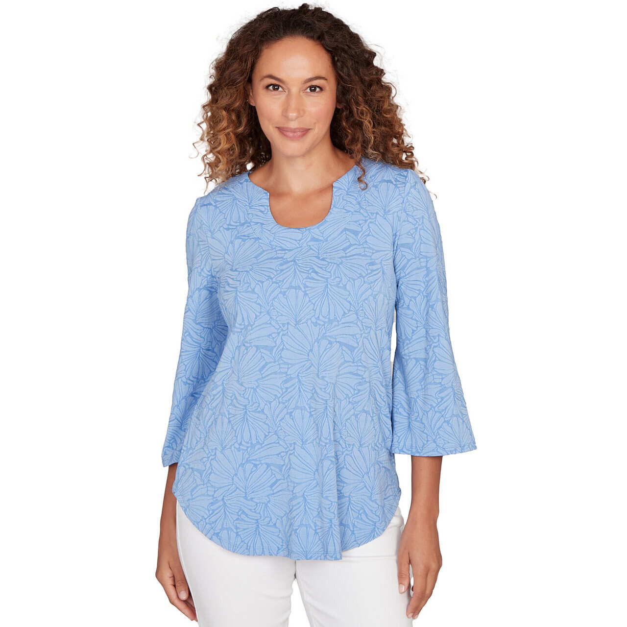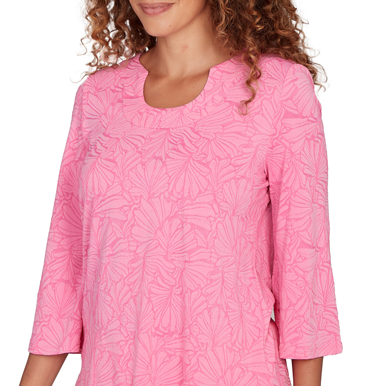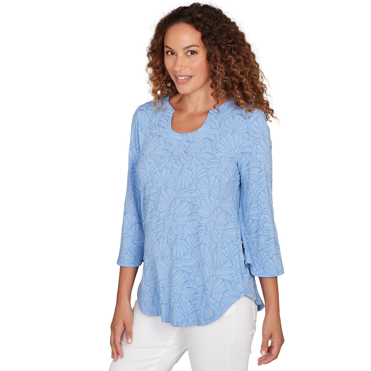 Women's Horseshoe Neck Solid Floral Jacquard Top - 81453
