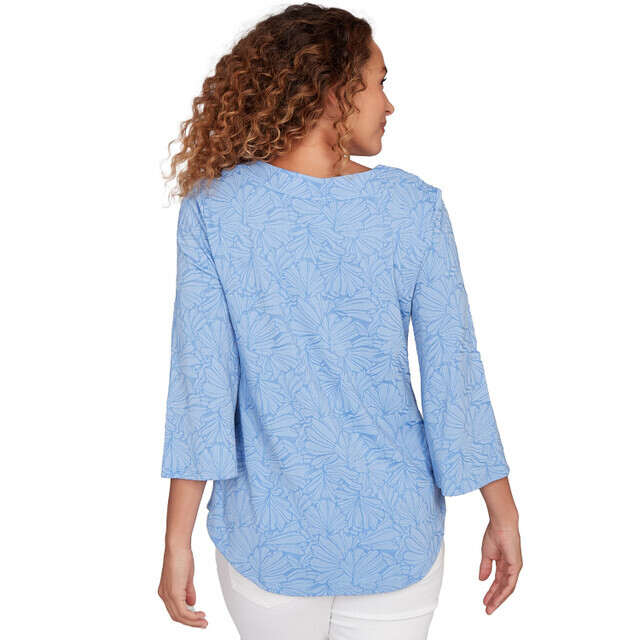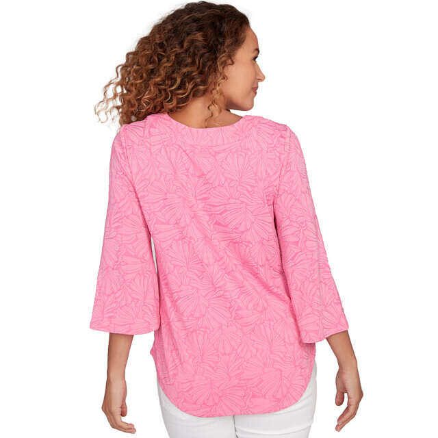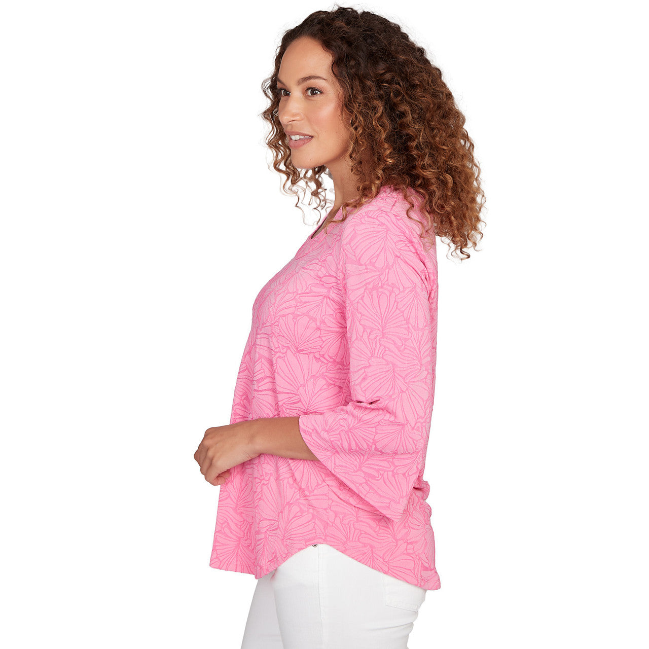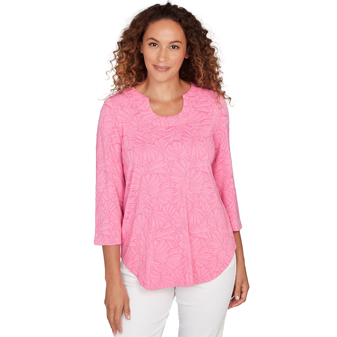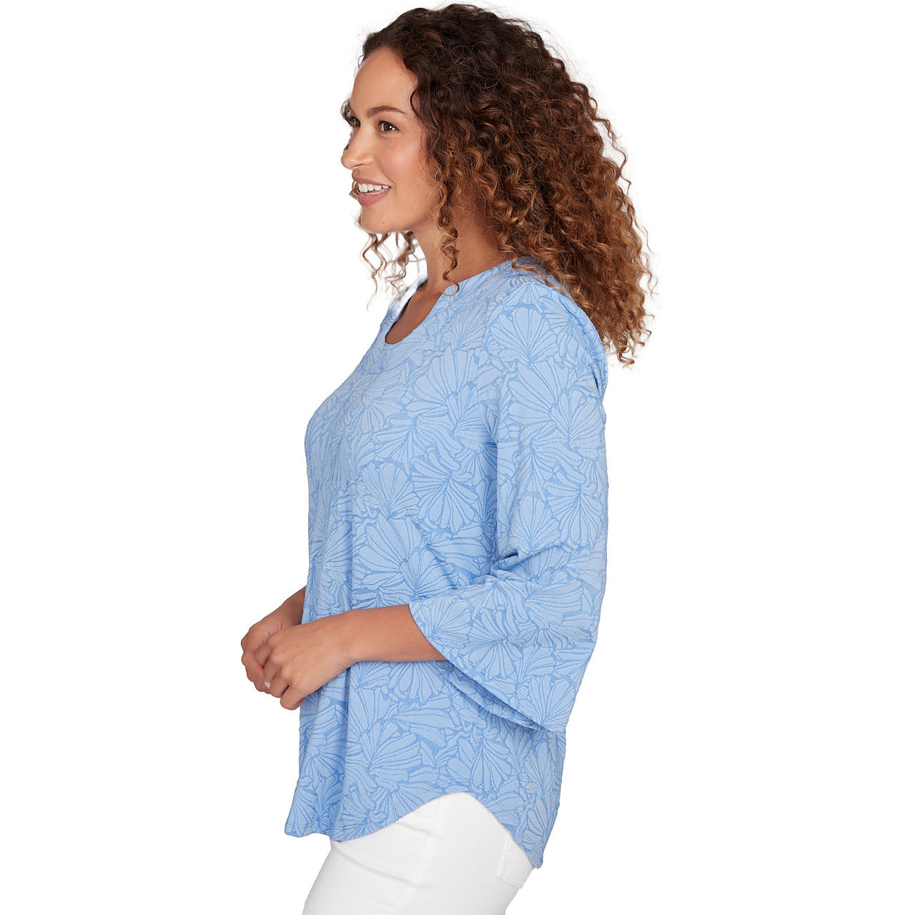Women's Horseshoe Neck Solid Floral Jacquard Top - 81453
