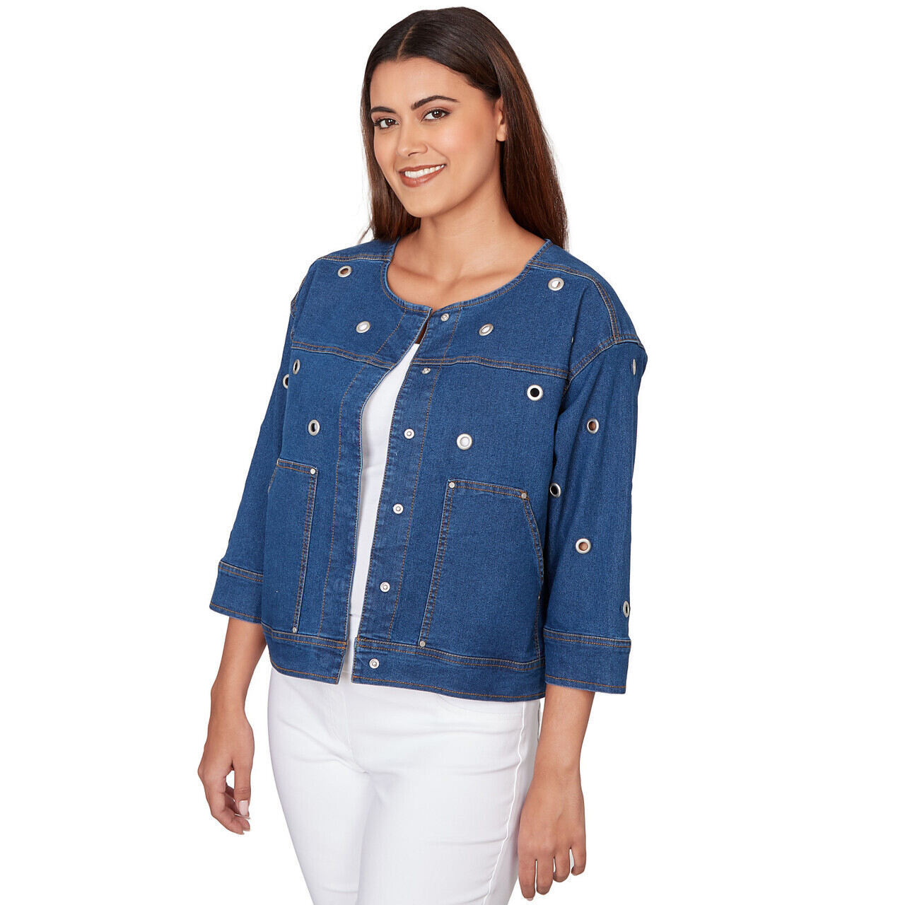 Women's Grommet Detail Stretch Denim Jacket - 78431
