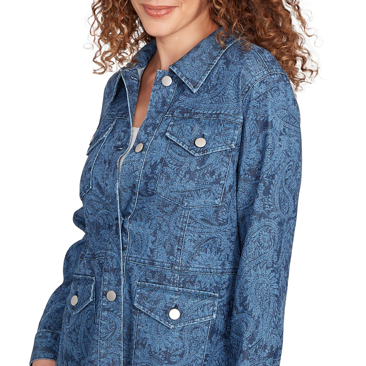 Women's Paisley Stretch Denim Utility Jacket - 23131