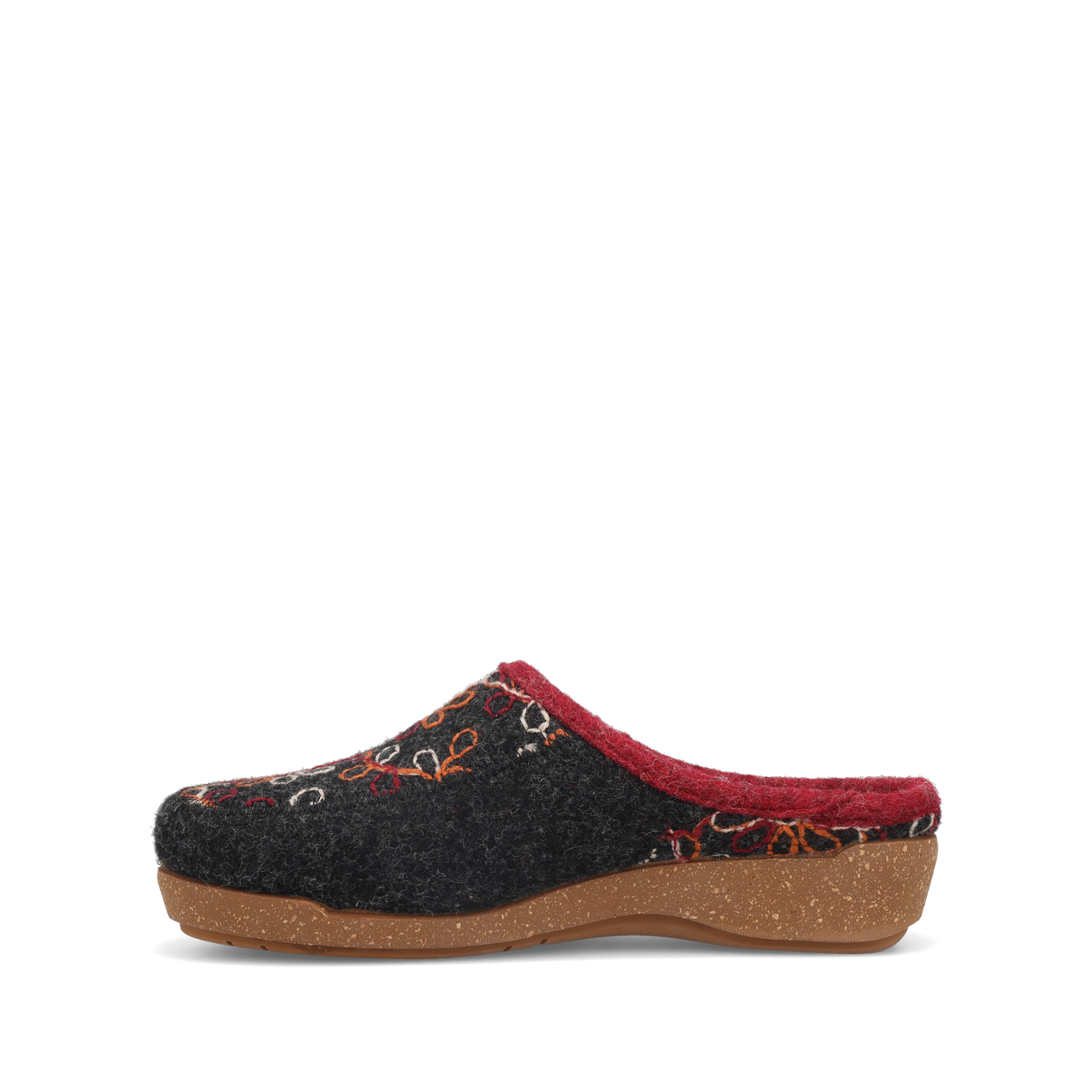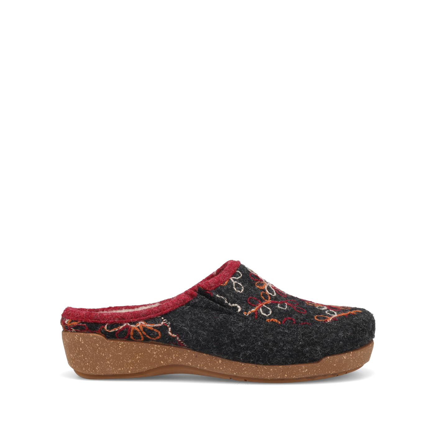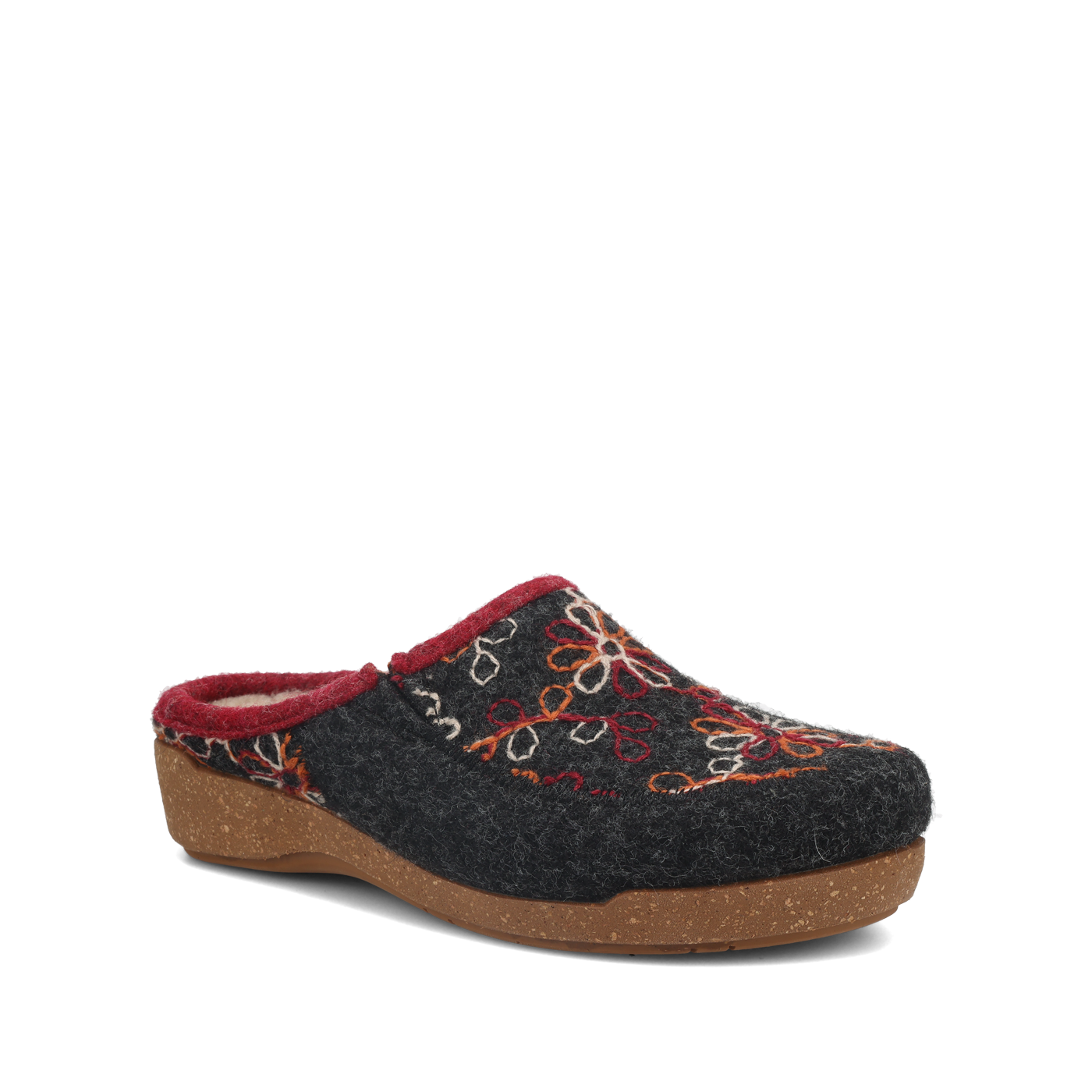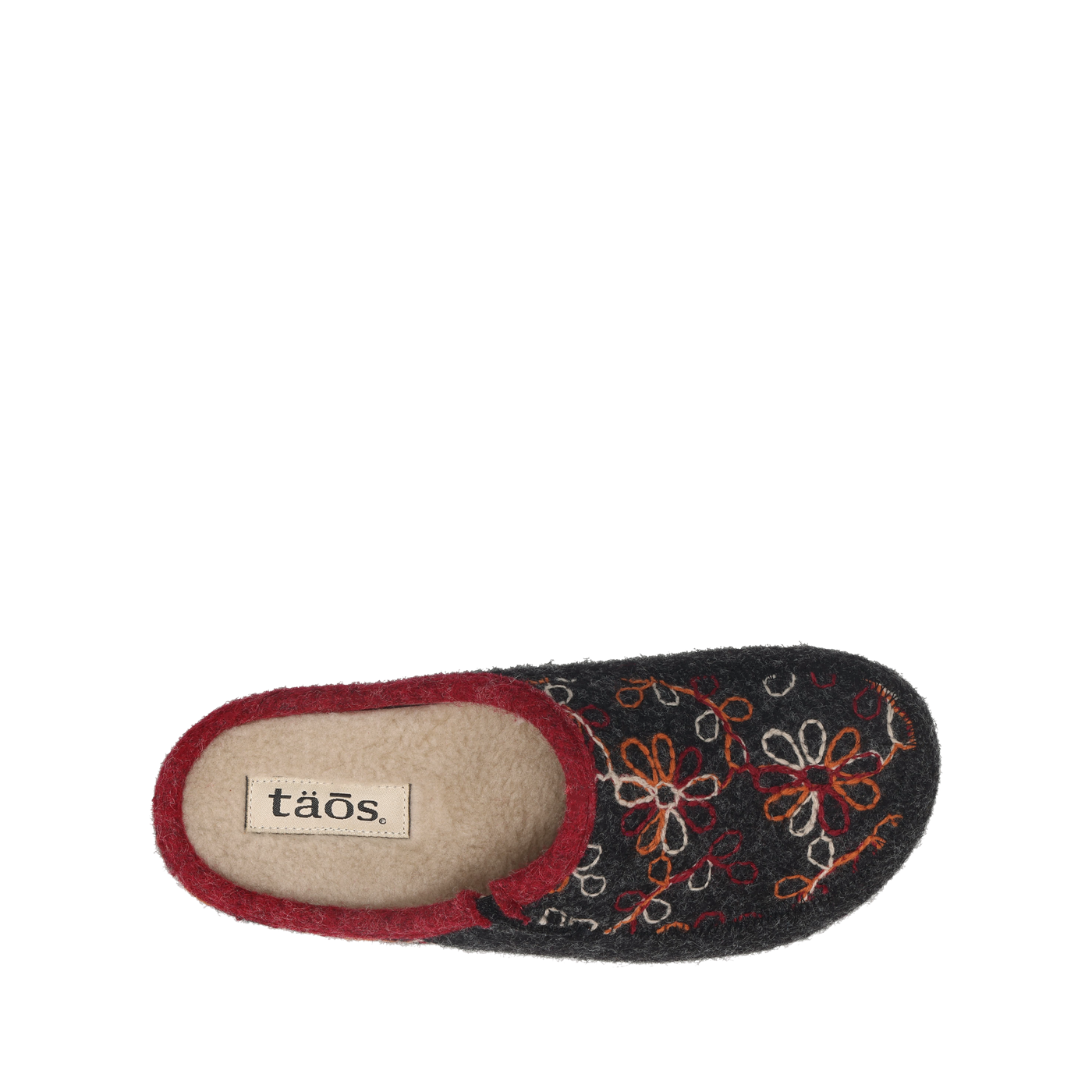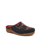 Woolflower is a fresh take on your Italian wool favorite with vibrantly outlined multi-color patterns. These Spanish-made hand-embroidered slide-on clogs brighten up your day or night, enjoy wearing them in and around the house or out and about town courtesy of the indoor/outdoor rubber outsole. The faux fur lining makes them irresistible and the signature Taos Curves & Pods® removable footbed combined with our flexible corked midsole delivers support that lasts all day and all night!
