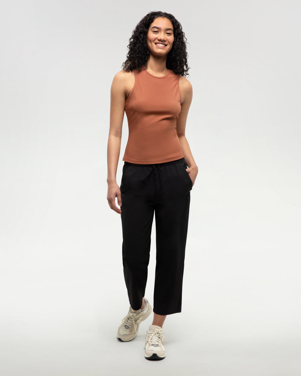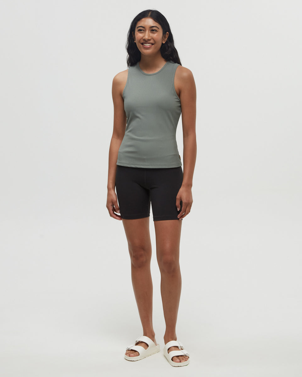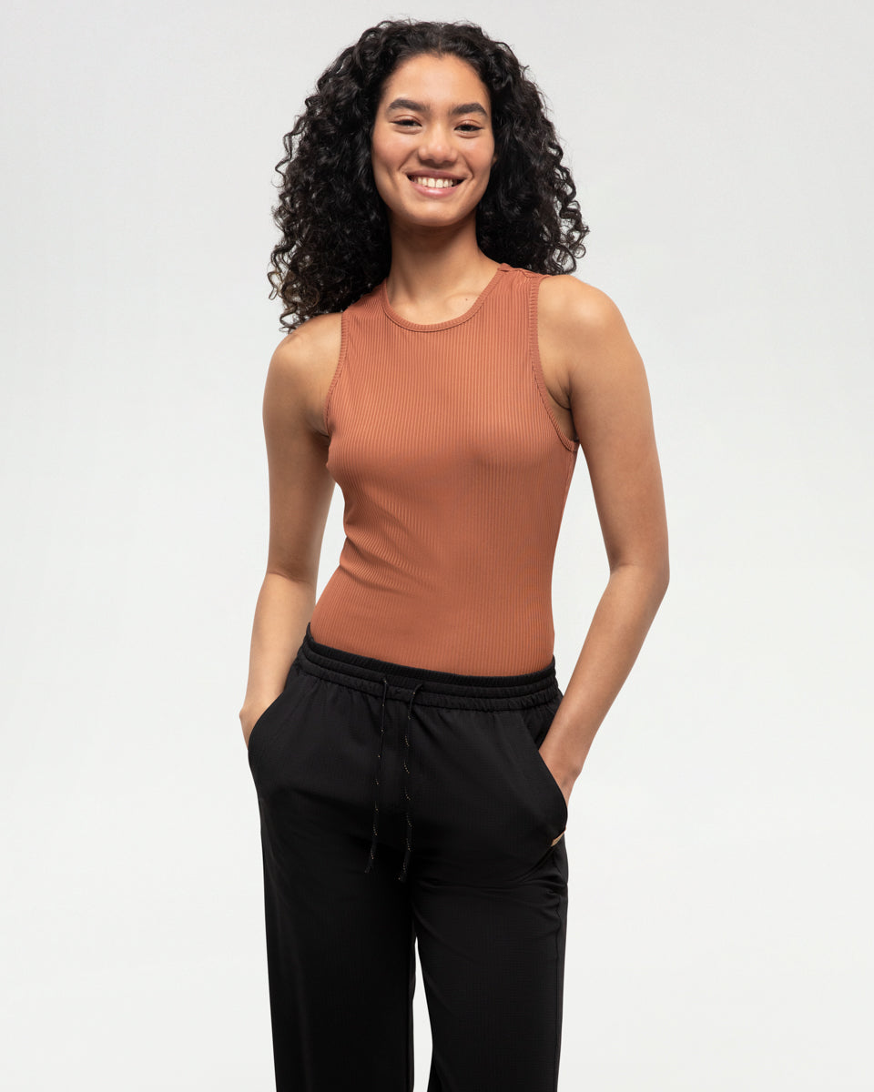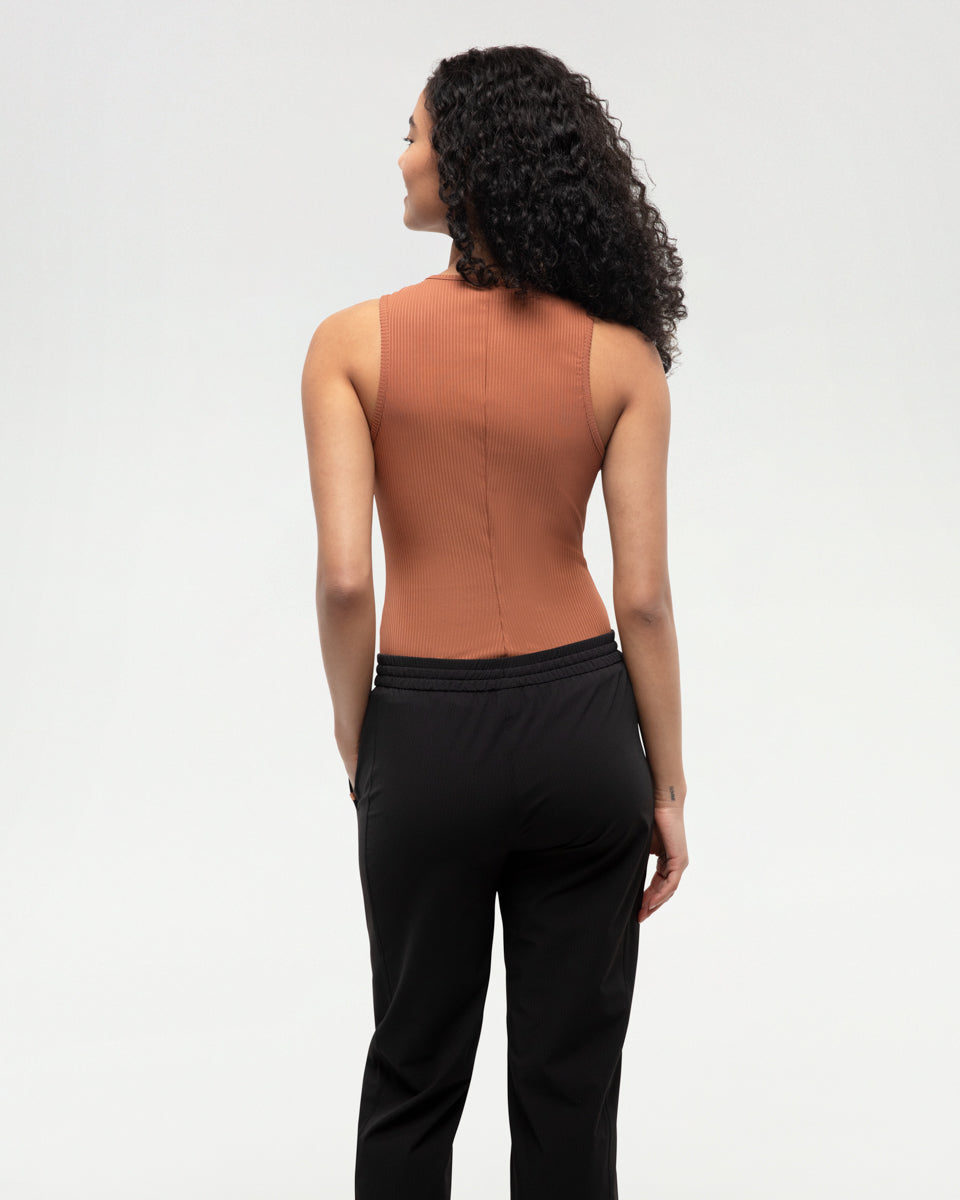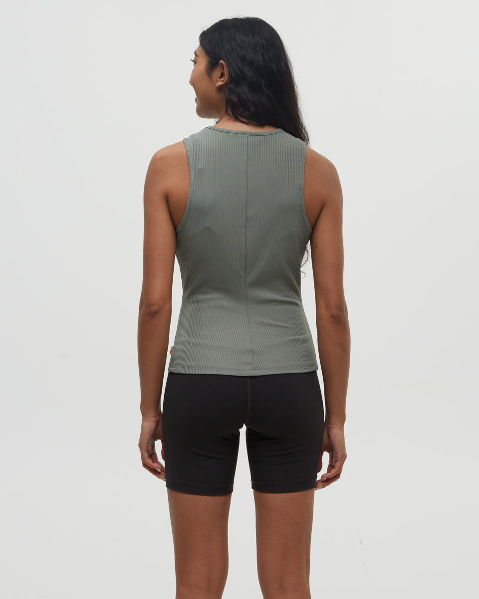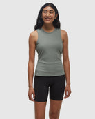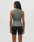 Whether you're pairing it with bike shorts or a hoodie, this high-neck tank is all about versatility. Made with moisture-wicking fabric, it keeps you comfortable no matter the activity.