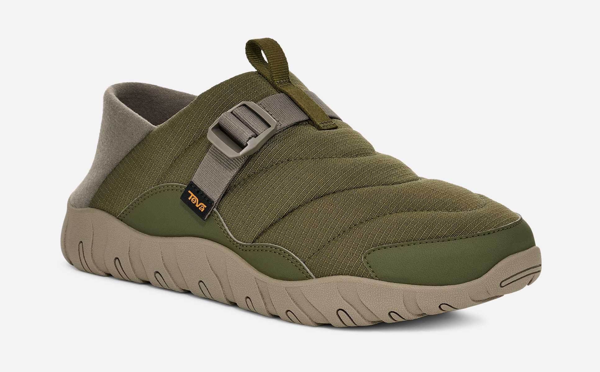 The perfect cold weather go-to, our ReEmber Camp shoe cues up cloud-like comfort with a puffy, quilted upper. Equally at ease at base camp and supportive enough for all-day wear, this versatile outdoor shoe employs a grippy rubber sole, an adjustable strap closure, and collapsible heel for easy on/off.