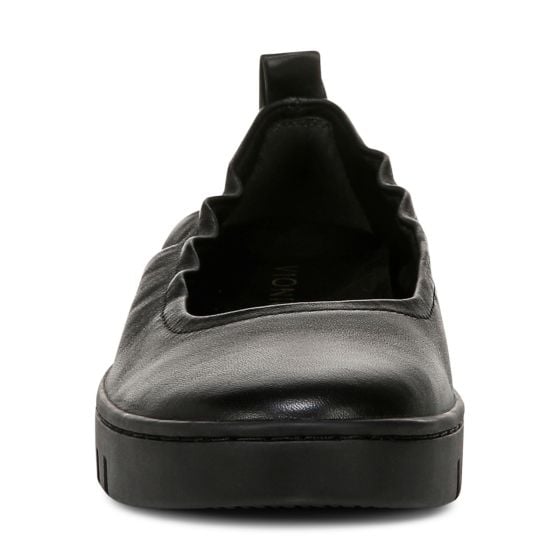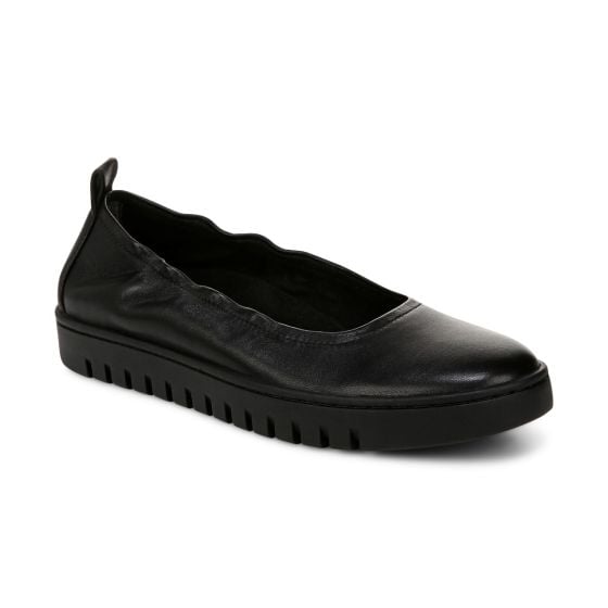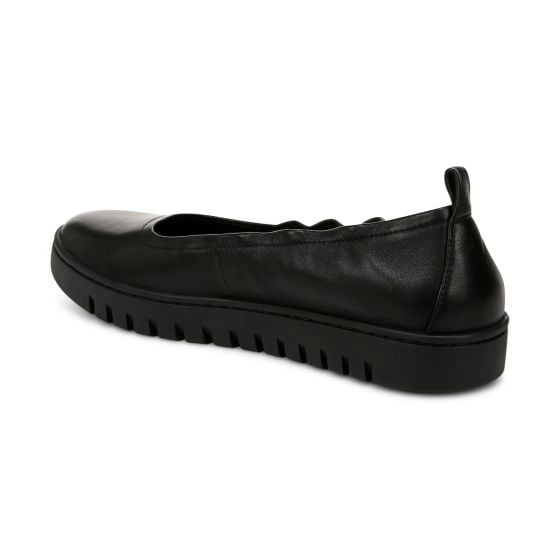Ballet upper meets our ultra flex Uptown footbed! Slip into this versatile casual with a ruched heel gathering for the perfect fit. Collapsible soft leather uppers are perfect for packing and deliver out of the box comfort. Embrace sustainable style with every step.