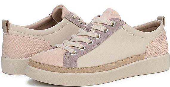 Winny Leather and Suede Colorblock Sneakers - Parchment/Cameo Rose - H7773LK