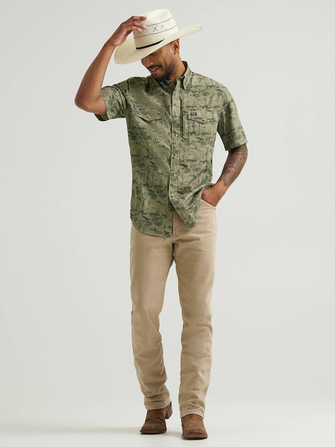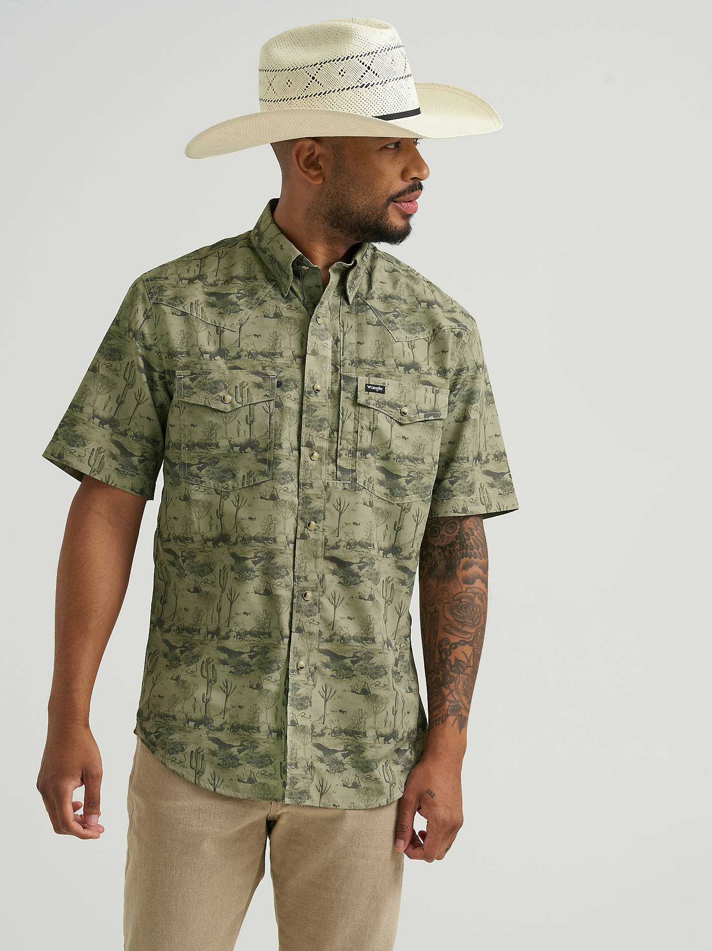 Wrangler All Terrain Gear Men's Print Performance Shirt - Olivine - 112375130