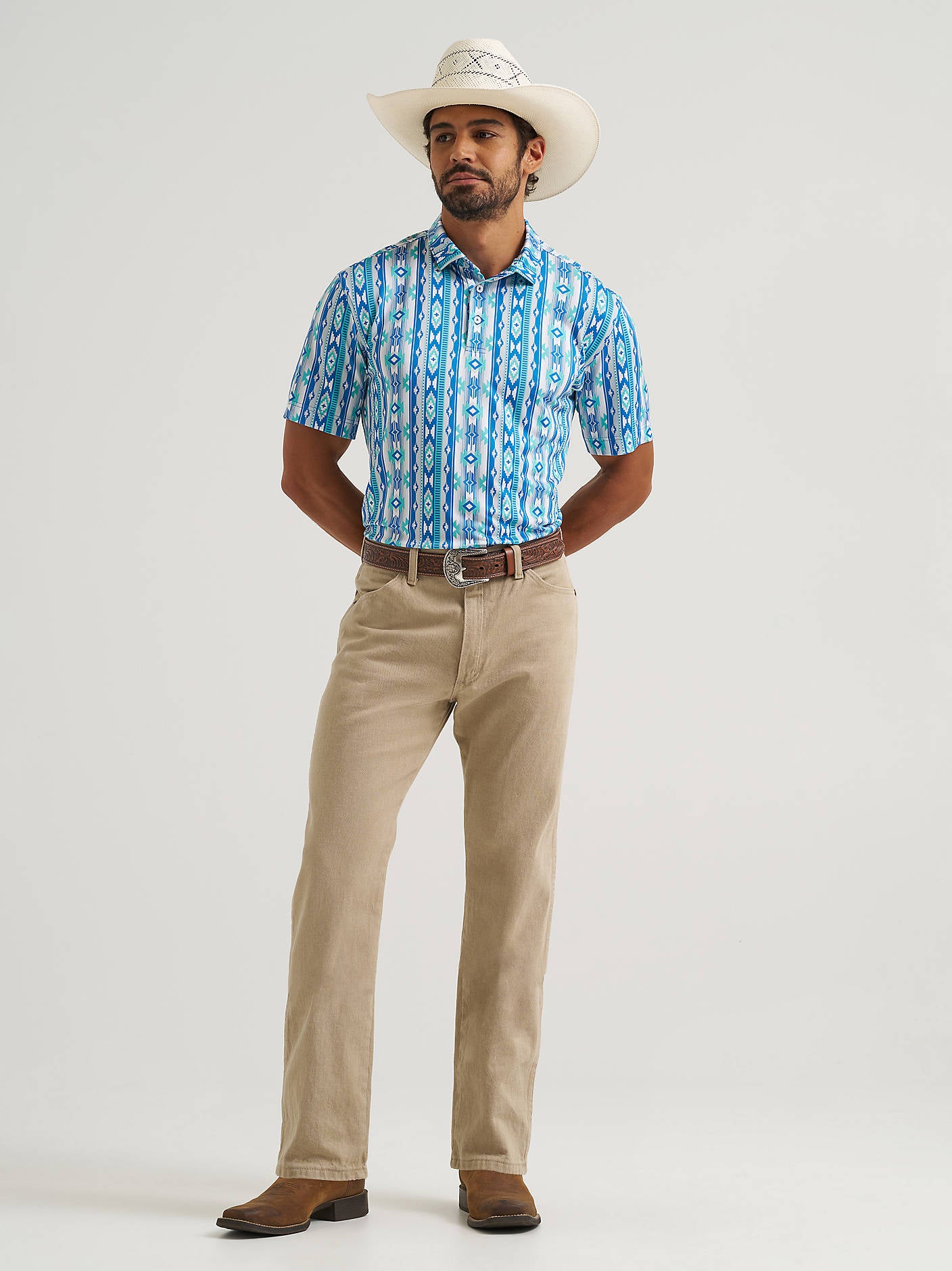 Wrangler All Terrain Gear Men's Performance Polo Shirt - Checotah Turquoise - 112375254