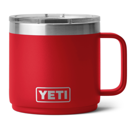 The YETI Rambler® 14 oz. Mug is one of the toughest, most over-engineered camp mugs out there. Unlike traditional camp mugs, this double-wall vacuum-insulated body protects hands from hot or cold contents while keeping coffee, chili, oatmeal - you name it - well-insulated. Like all Rambler® Drinkware, the 14 oz. Mug and lid are dishwasher safe making them easy to clean. The mug's wide opening means contents are easily accessible, but will cool quicker. That's why the mug comes with the MagSlider™ Lid, it adds an additional barrier of protection to prevent heat or cold from escaping, but please note* the magnet component is not leakproof and will not prevent spills. Important: Do not place mug over external heat source or open flame. Vacuum seal or other damage may occur.