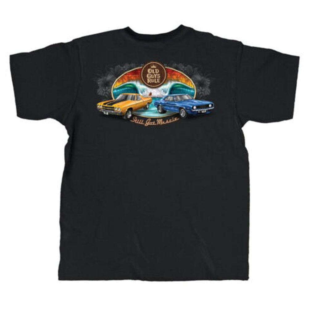 Old Guys Rule Muscle Cars T-Shirt made of 100% pre-shrunk cotton that runs true to size, this premium T-shirt can be machine washed and tumbled dry medium.