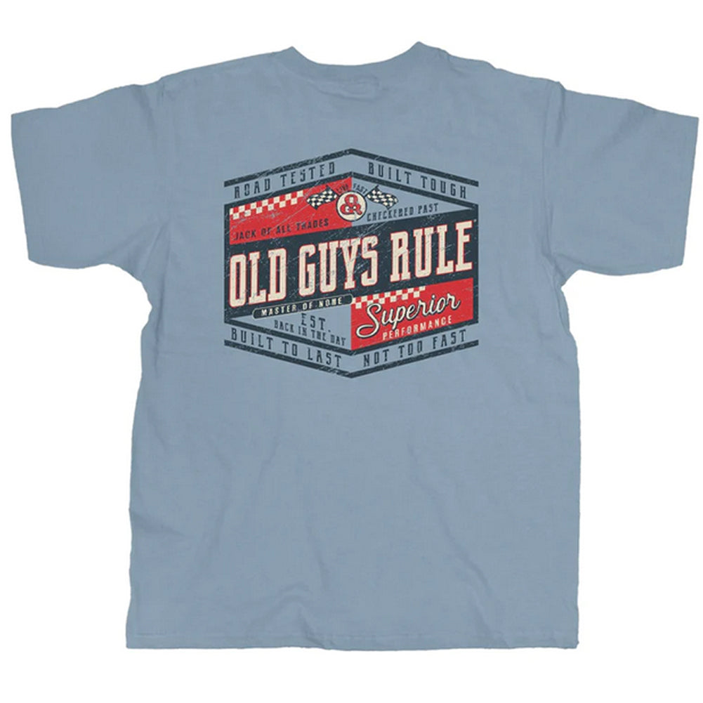 Old Guys Rule Superior T-Shirt made of 100% pre-shrunk cotton that runs true to size, this premium T-shirt can be machine washed and tumbled dry medium.