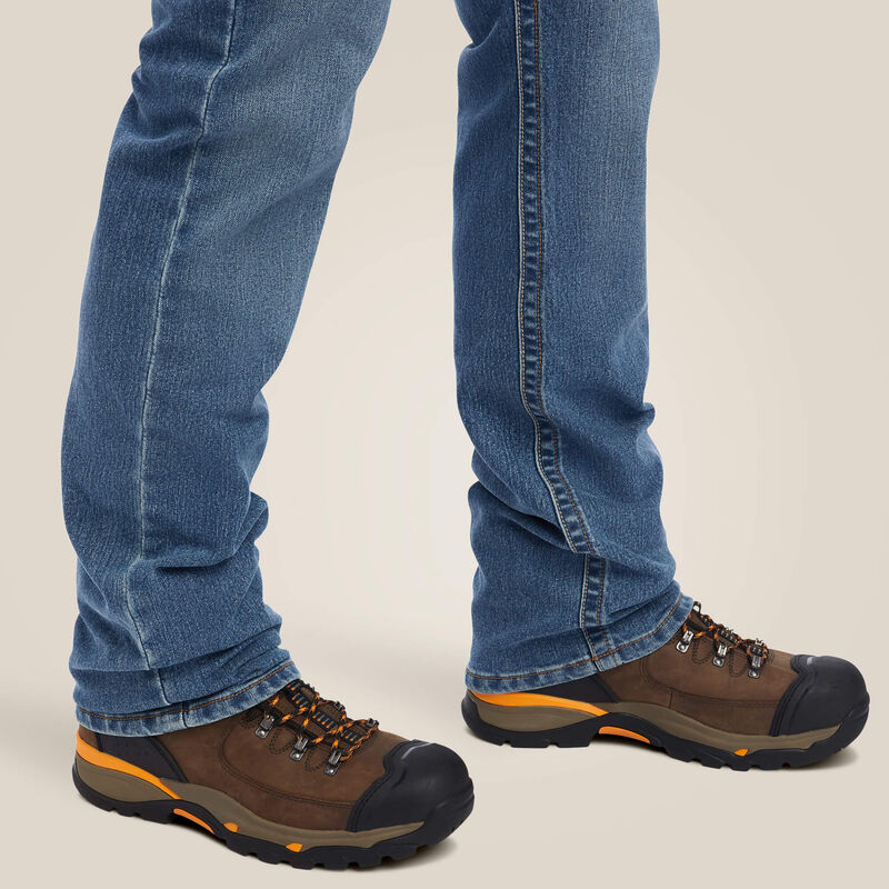Ariat Rebar M4 Low Rise DuraStretch Edge Boot Cut Jean a modern take on a classic style. Comfortable and durable, our boot-cut M4 is relaxed through the hip and thigh for a fit that looks good on everyone.