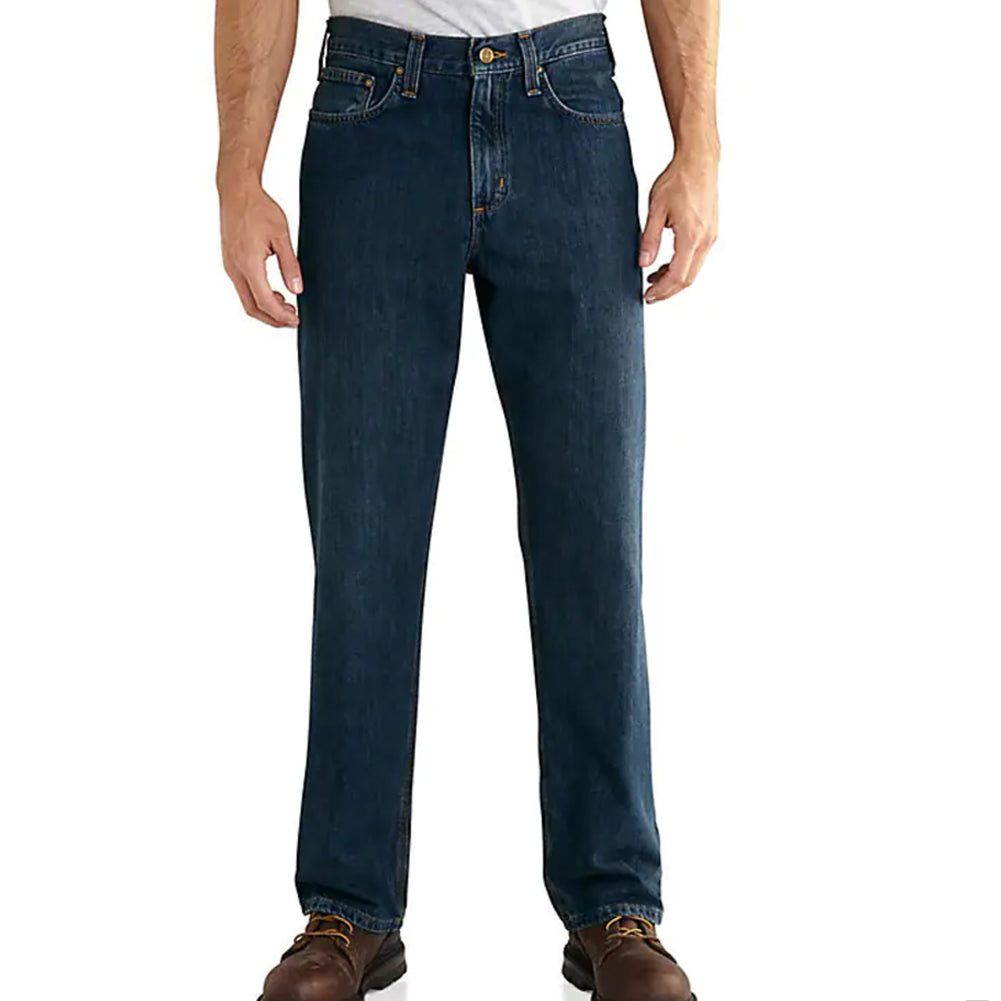 These men's jeans are made with midweight denim that's just as tough and durable as our heavyweight denim. The relaxed-fit jeans have a straight leg opening that fits over boots. Previously known as the Relaxed Fit Holter Jean