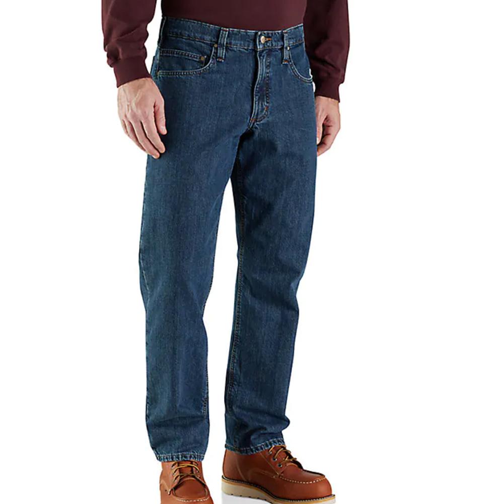 Carhartt Relaxed Fit Flannel-Lined 5-Pocket Jean for the job doesn't stop for cold weather. These men's flannel-lined jeans are built to take on low temperatures. A soft flannel lining adds warmth. Rugged, washed denim stands up to job site wear. Their relaxed fit offers a little extra room through the seat and thigh, with a straight leg opening that slides easily over boots.