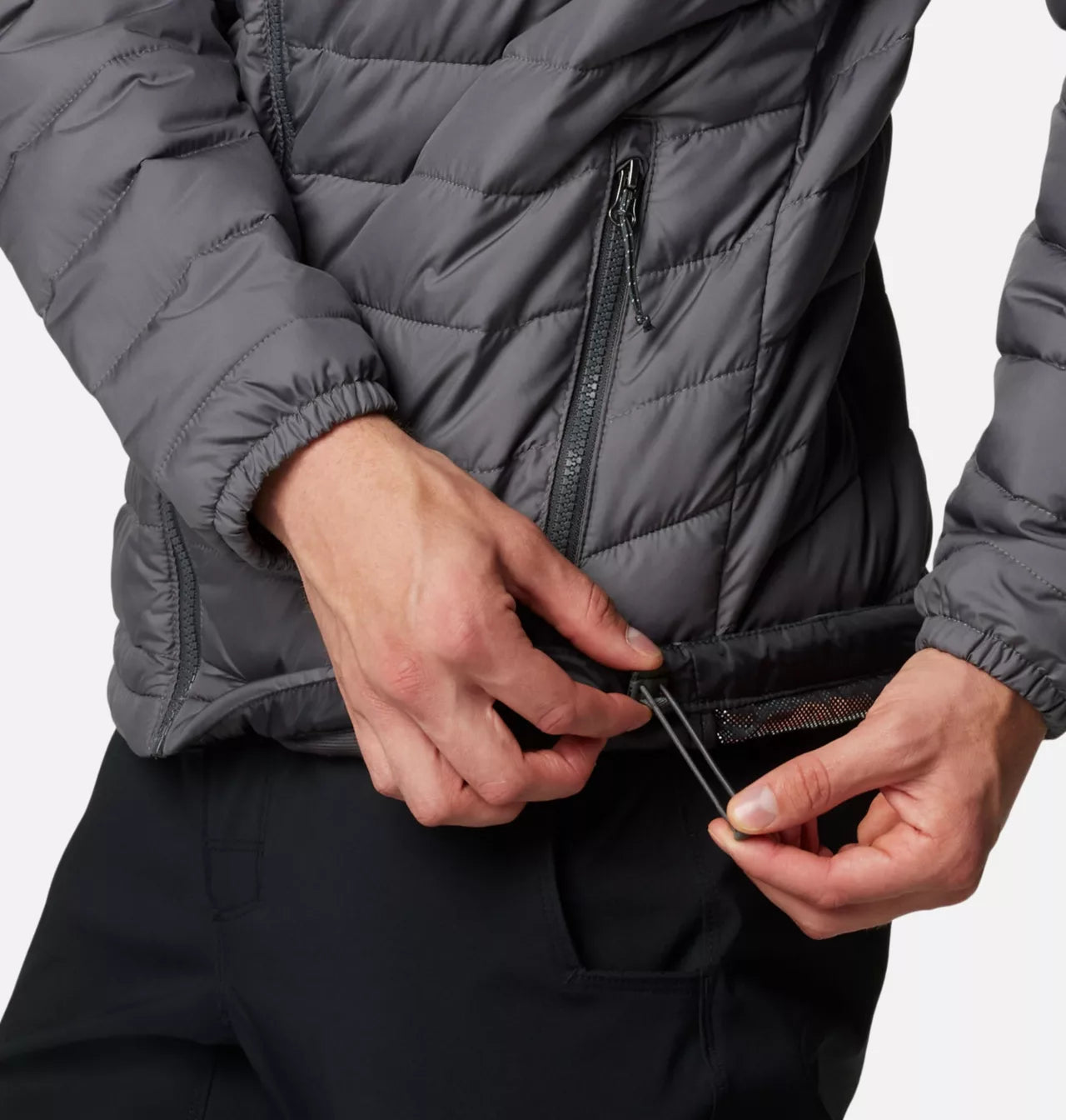 - Drawcord-adjustable hem and elastic cuffs seal out the elements