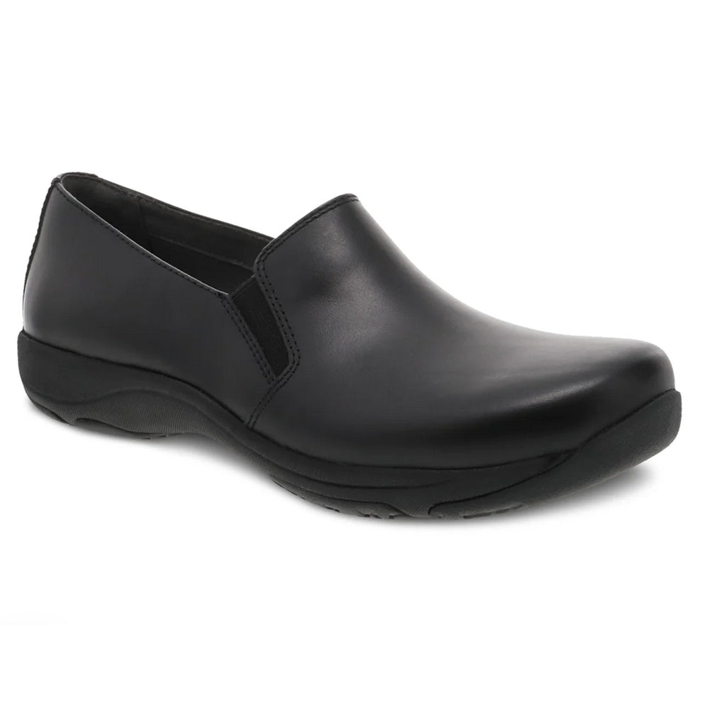Slip on Nora and get to work. This sport-inspired slip-on shoe features double goring for easy on-off and stain-protected leather uppers and a black outsole for simple and durable wear. A removable footbed with Dansko Natural Arch® technology and slip-resistant rubber outsoles help you keep your footing no matter how long your days may be.